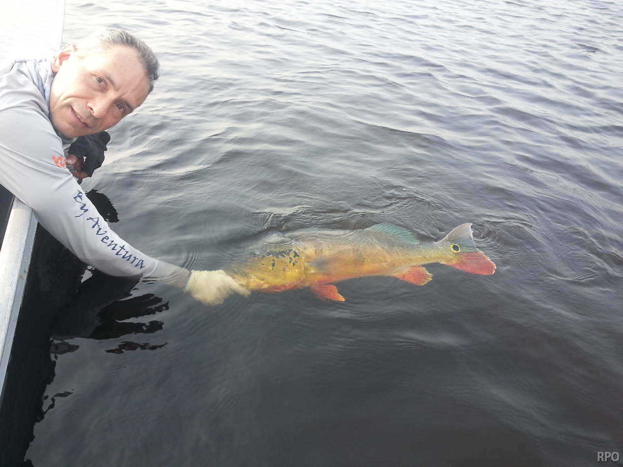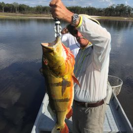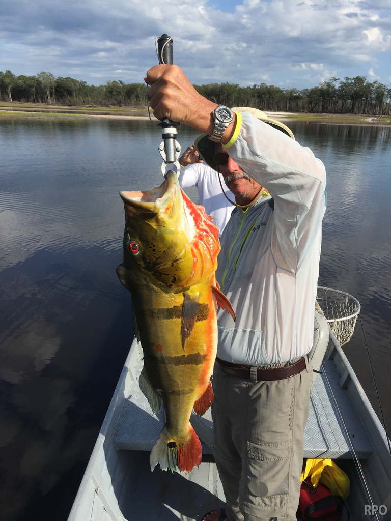 Last weekend the Oliveira mixed group of baitcasters and fly-fishermen broke waters at the headwaters of our private fishery in the Xeruini river. They landed 827 peacock bass in only 2 1/2 days, the largest of which weighed 16lbs.