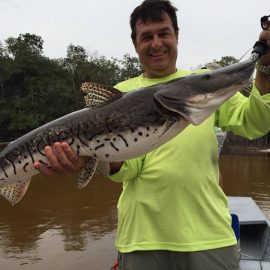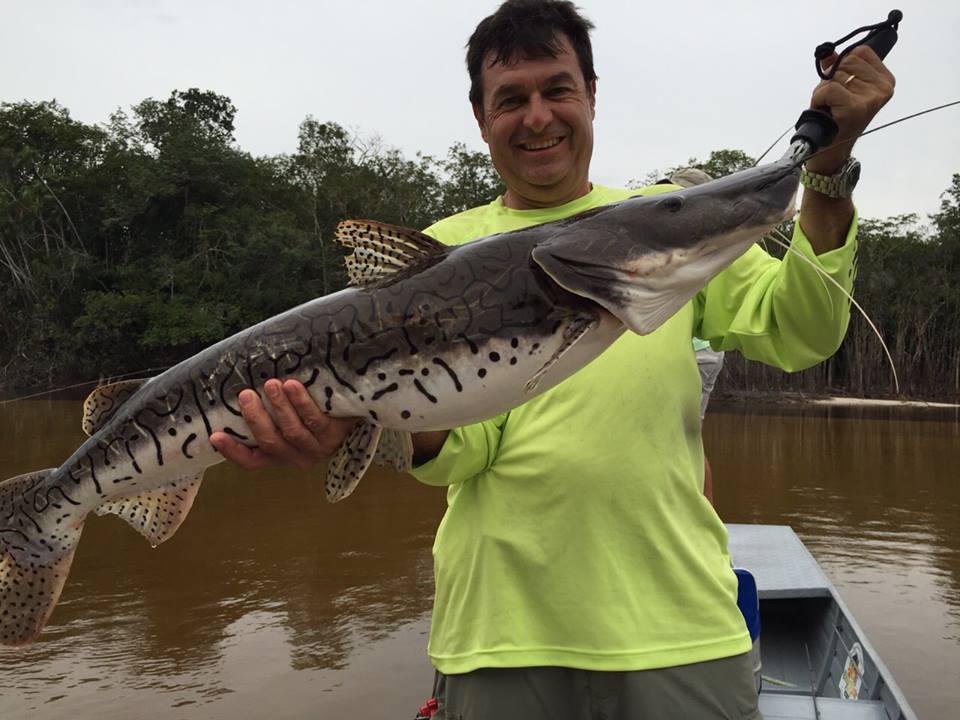 We have a mix of baitcasters and fly-fishermen. Camp reports that best working lures are helice, joao pepino, choppers, and poppers for our fly-fishermen. Lots of intense surface action. Other species caught include, piranhas, bicudas, peixe cachorro, trairas.