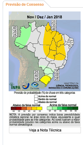 he above diagram depicts the rainfall probability for the next three months. The light green zone in the North forecasts a probability of about 35% that the rainfall will be above the historical mean. Therefore, the dry water cycle is expected to develop almost normal in the coming months in the North of Manaus (Dry-Zones N.West and N.East)