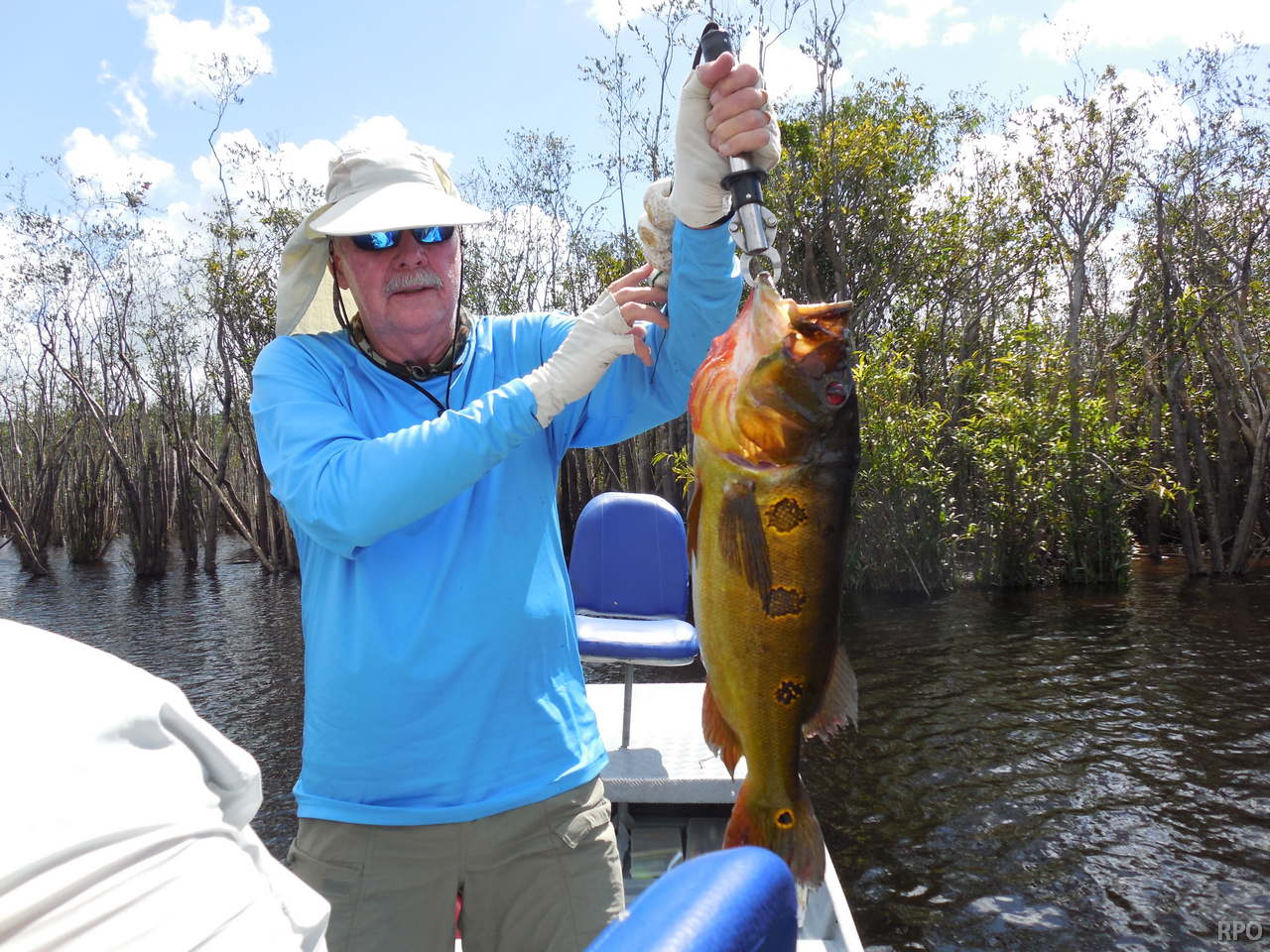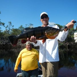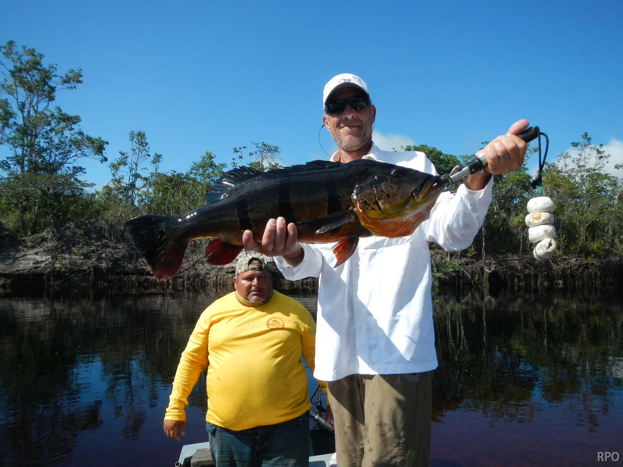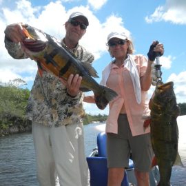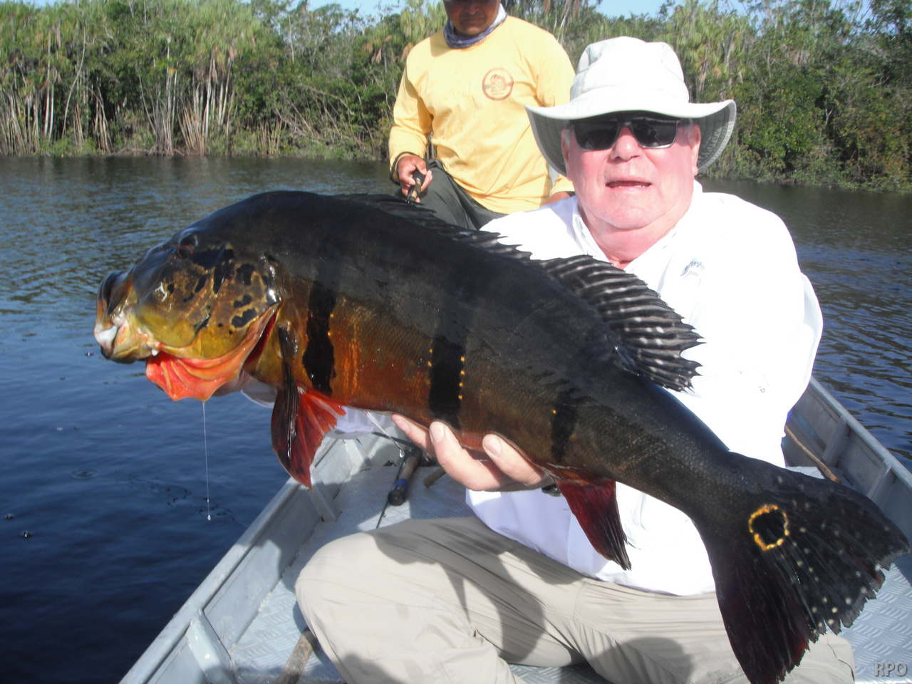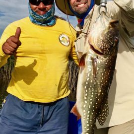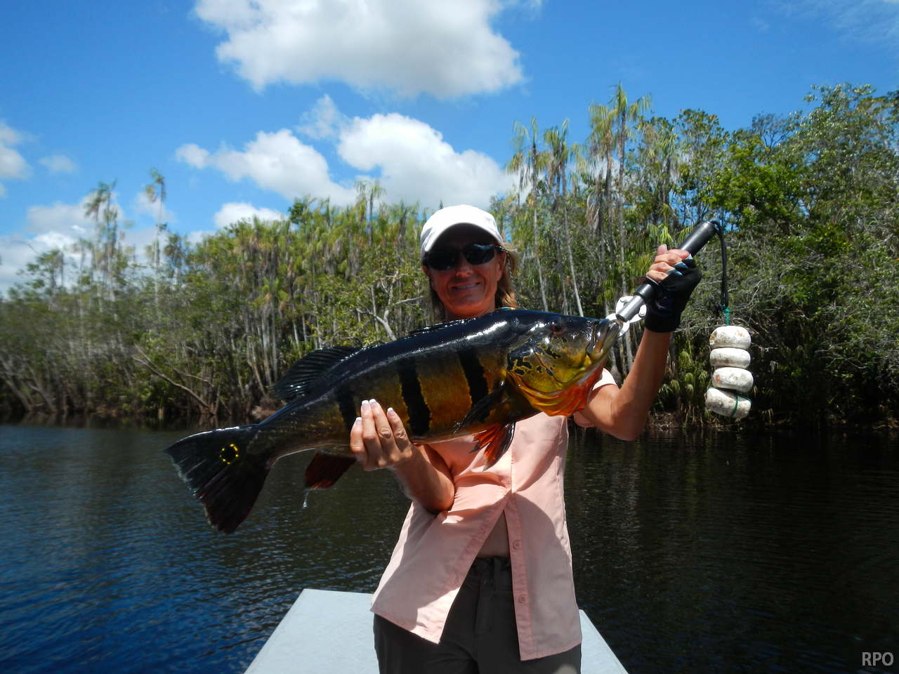 5.134 peacock bass landed last week by our 34 visiting anglers, plus an assortment of other species including massive aruanás, graceful trairas, aggressive black piranhas, etc.