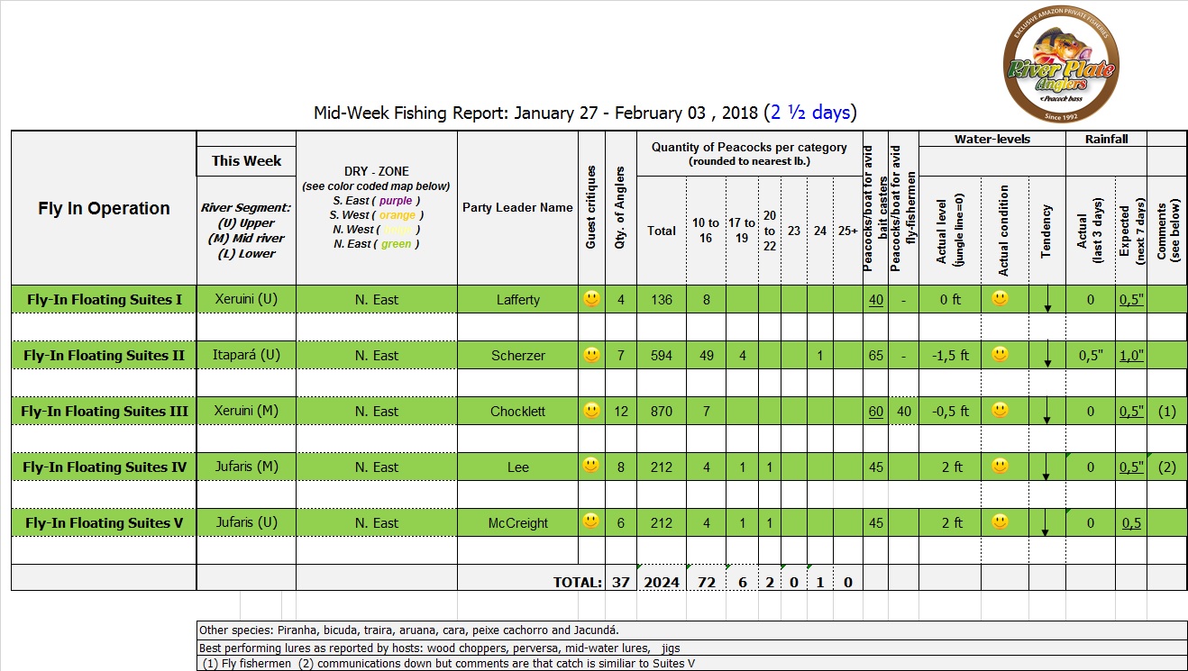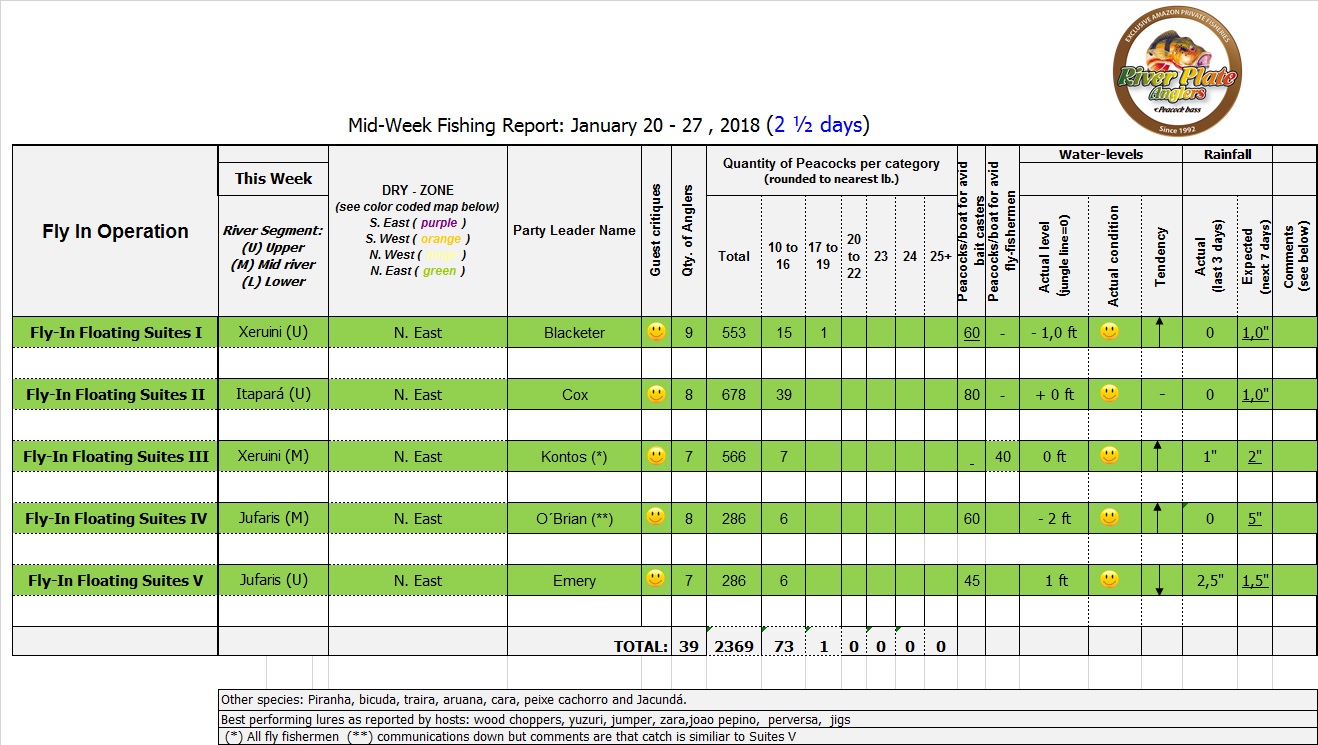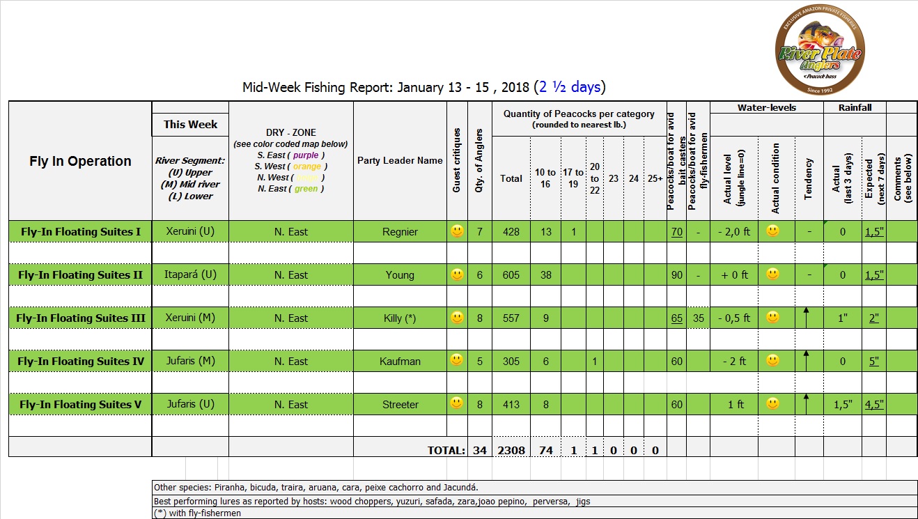 Dry-Zone N.East (see map below) is fishing at its finest. Yet again last week groups with 39 anglers beat the 5.000 landed peacock bass mark.