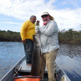 Last weekend at our Itapará private fishery, several trophies above the 17lbs benchmark were caught and released, with the (up to now) season record of 24lbs.. Simultaneously the Jufaris and Xeruini produced plenty of graceful aruanás, massive arapaimas, and several other species supplementing the peacock bass tally and enhancing the blissful experience. Fishing conditions are good, no rain during the weekend and forecasts show no significant rain for the rest of the week in our fisheries.