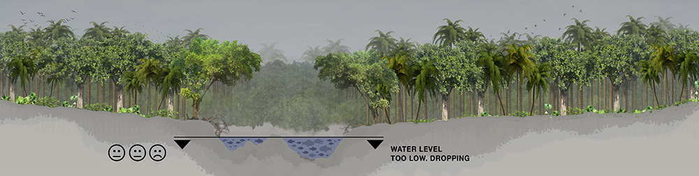 Water levels are about 2.0ft. above jungle level and rising. The Negro influence is being felt in the lower sectors of the Xeruini and Jufaris, floating suites have moved upriver towards the Branco area of influence. Negligible rain is expected in the coming days.