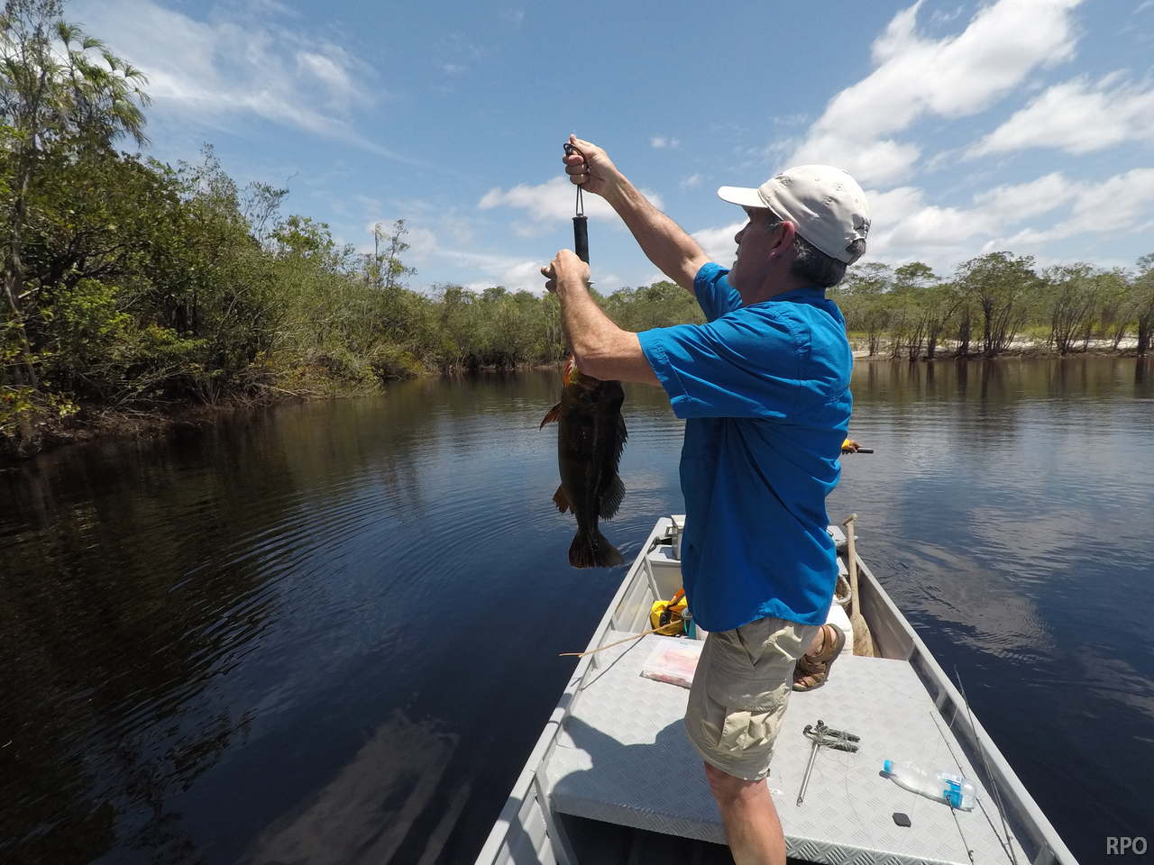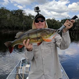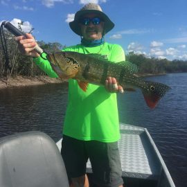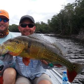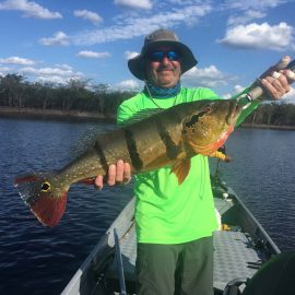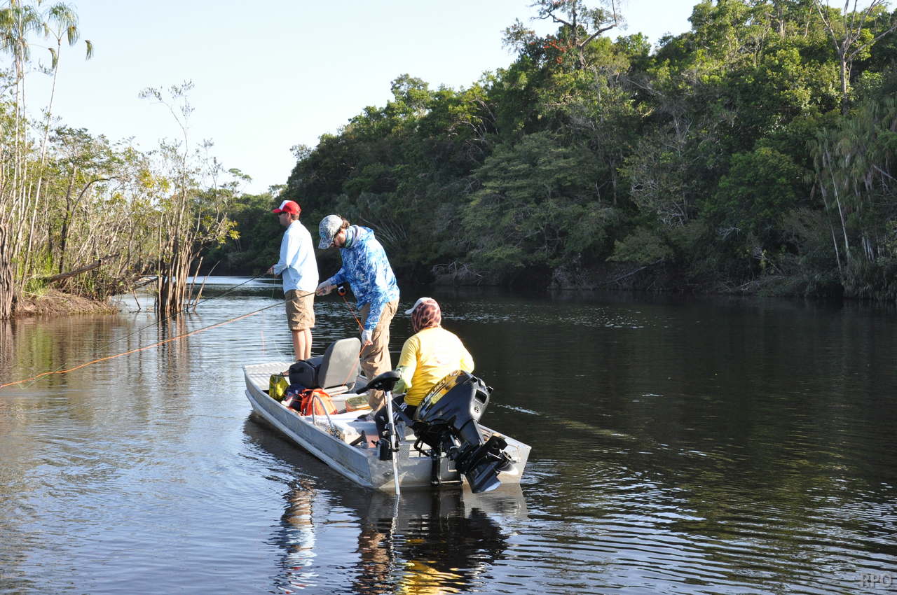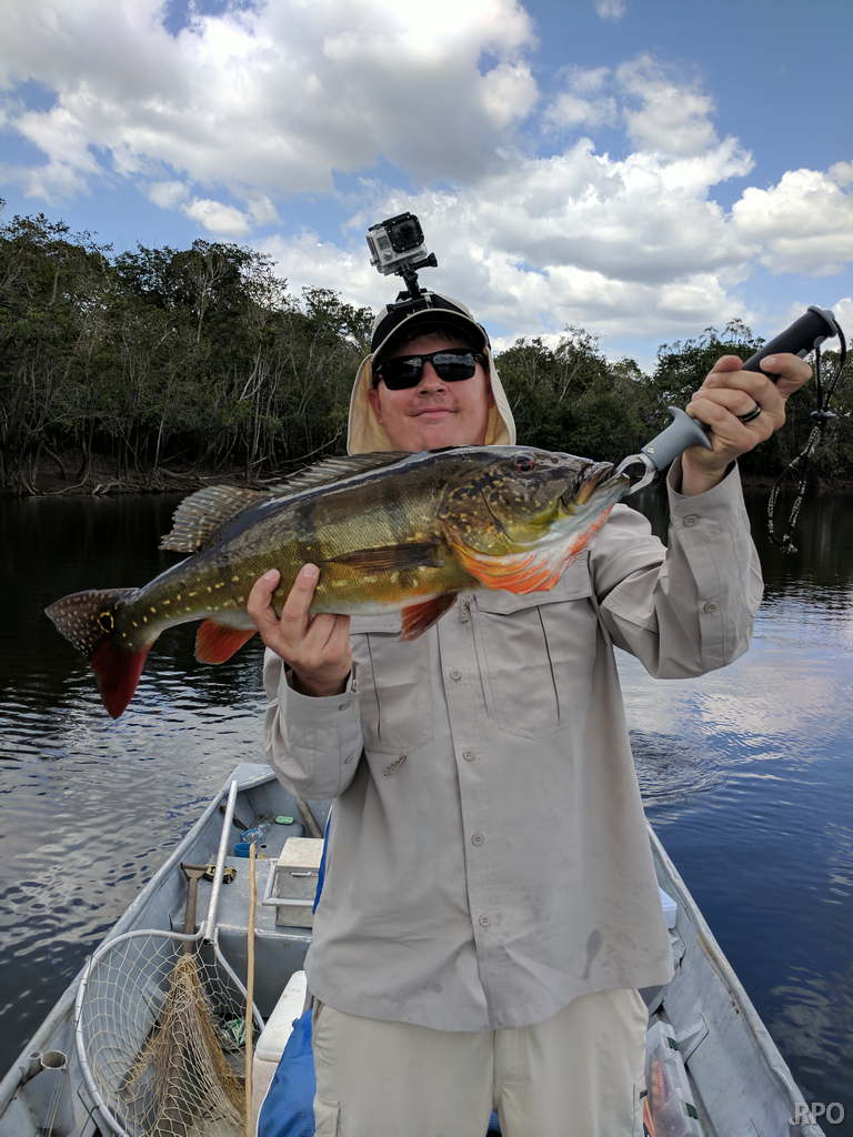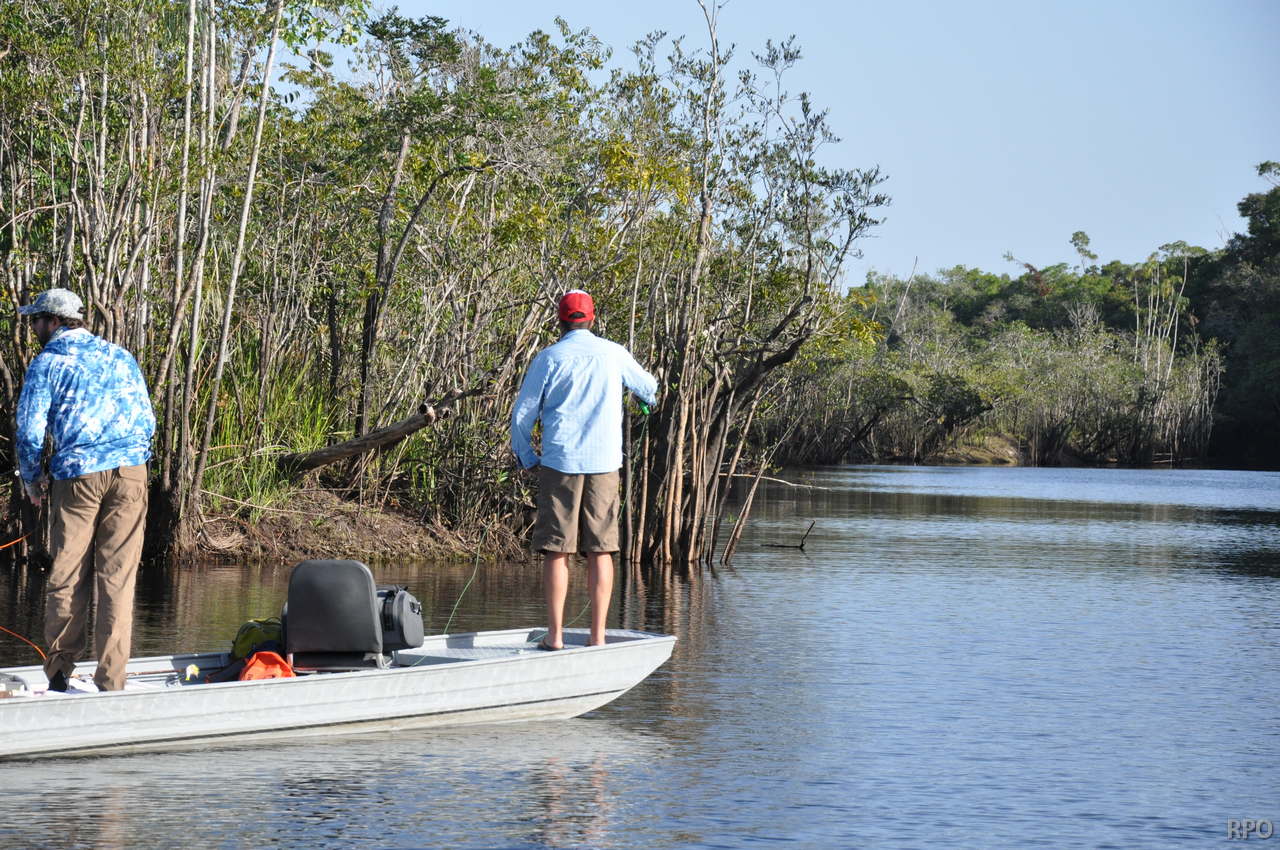 Water levels in many areas are now too low. They are under the influence of the above normal Branco basin receding cycle. Therefore, our Floating-suites are navigating towards the middle part of the rivers with higher waters levels and better trophy peacock bass fishing conditions. This dry tendency is expected to continue in the coming days where no significant rain episodes are forecasted in the Branco basin.
