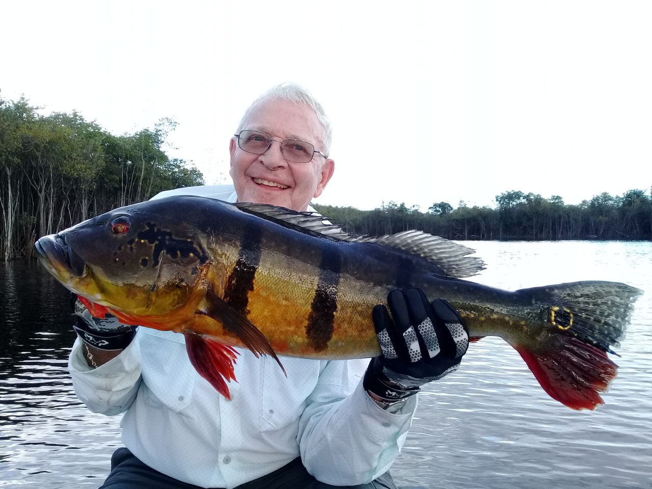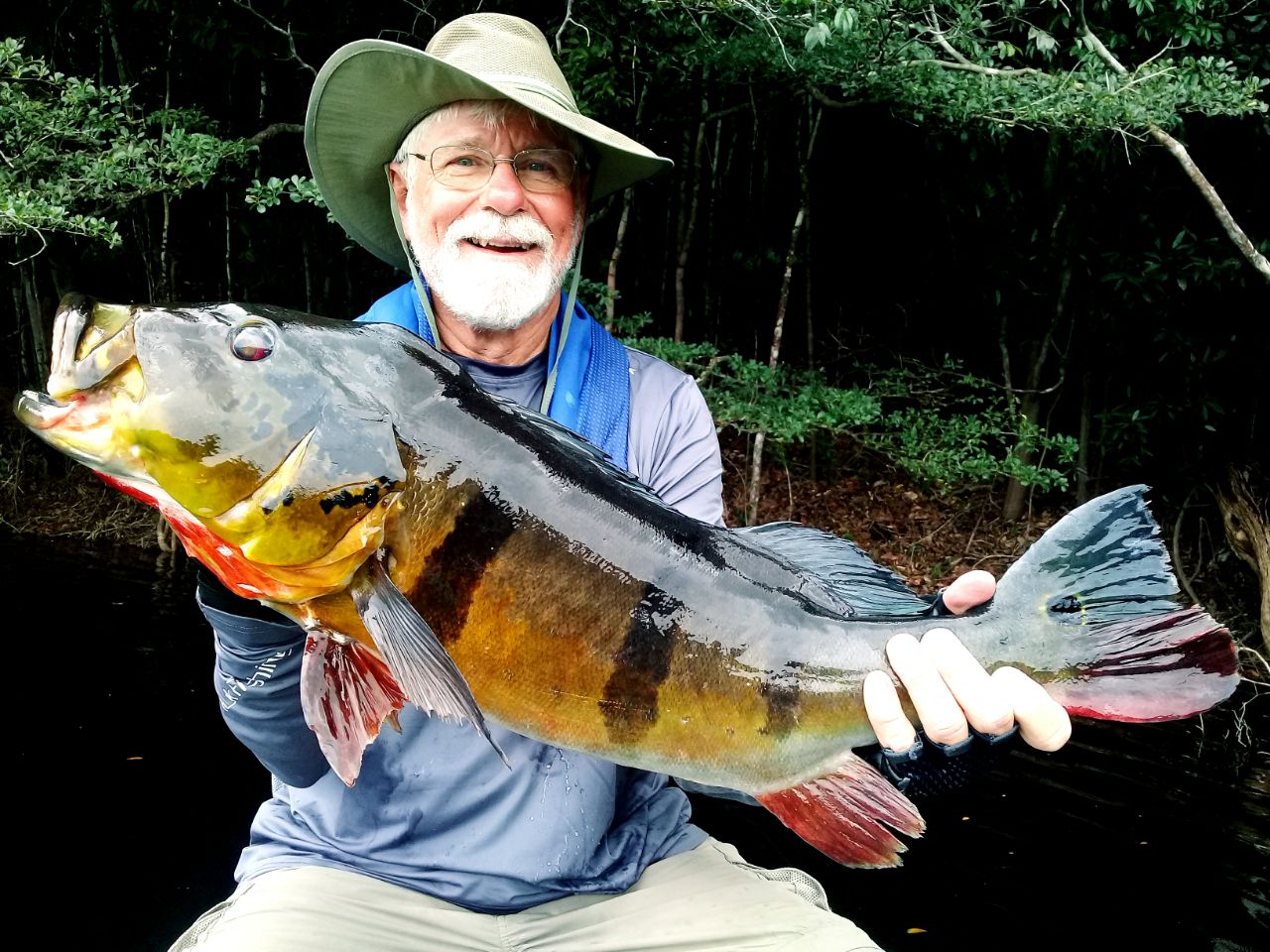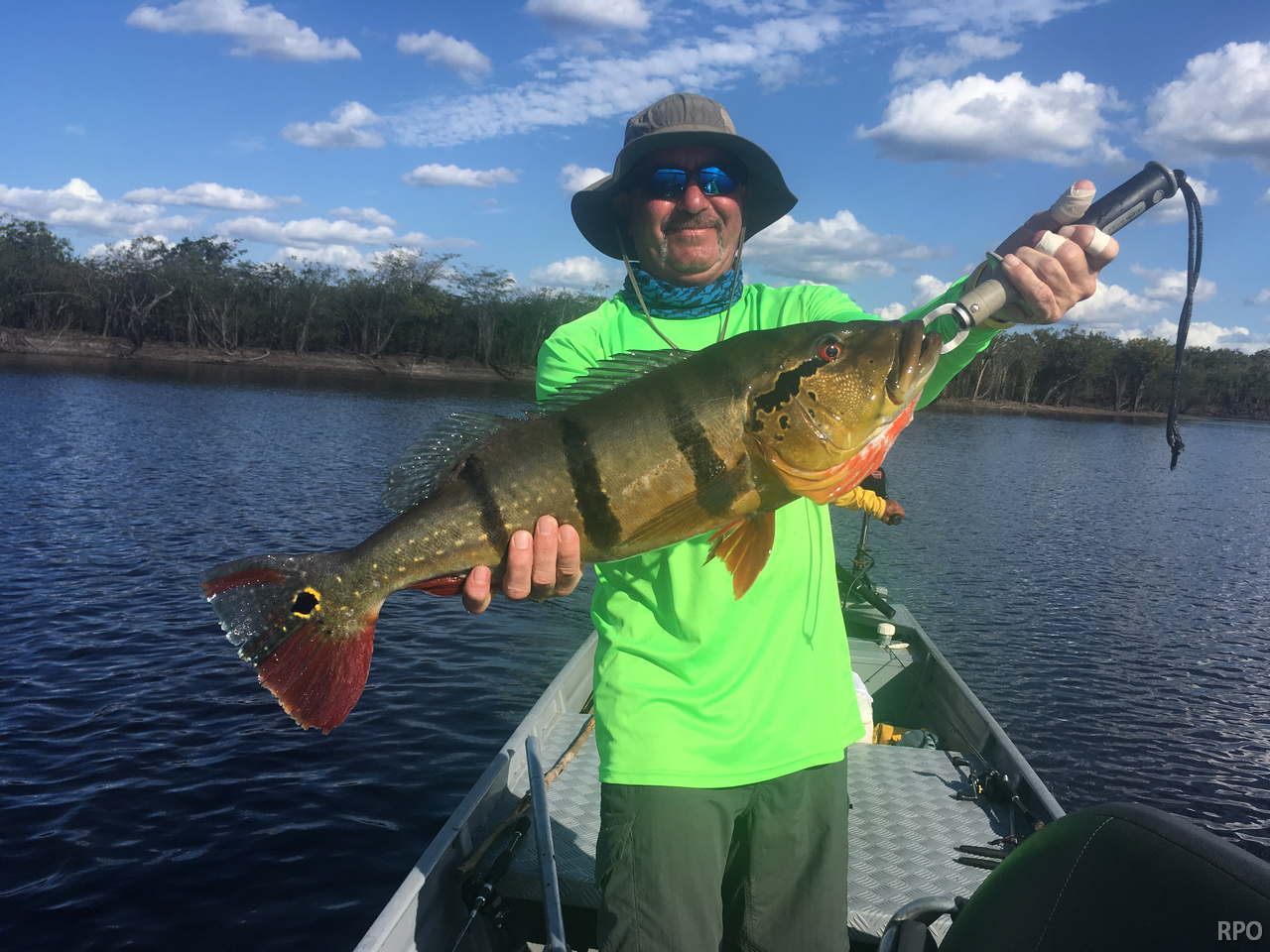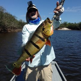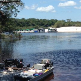 Water levels in many areas are now too low. They are under the influence of the above normal Branco basin receding cycle. Therefore, our Floating-suites are navigating towards the middle part of the rivers with higher waters levels and better trophy peacock bass fishing conditions. This dry tendency is expected to continue in the coming days where no significant rain episodes are forecasted in the Branco basin.