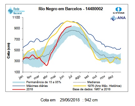 Water levels are high and peaking in the Barcelos area, please see the graph below, closed for the season, which is normal for this time of the year.