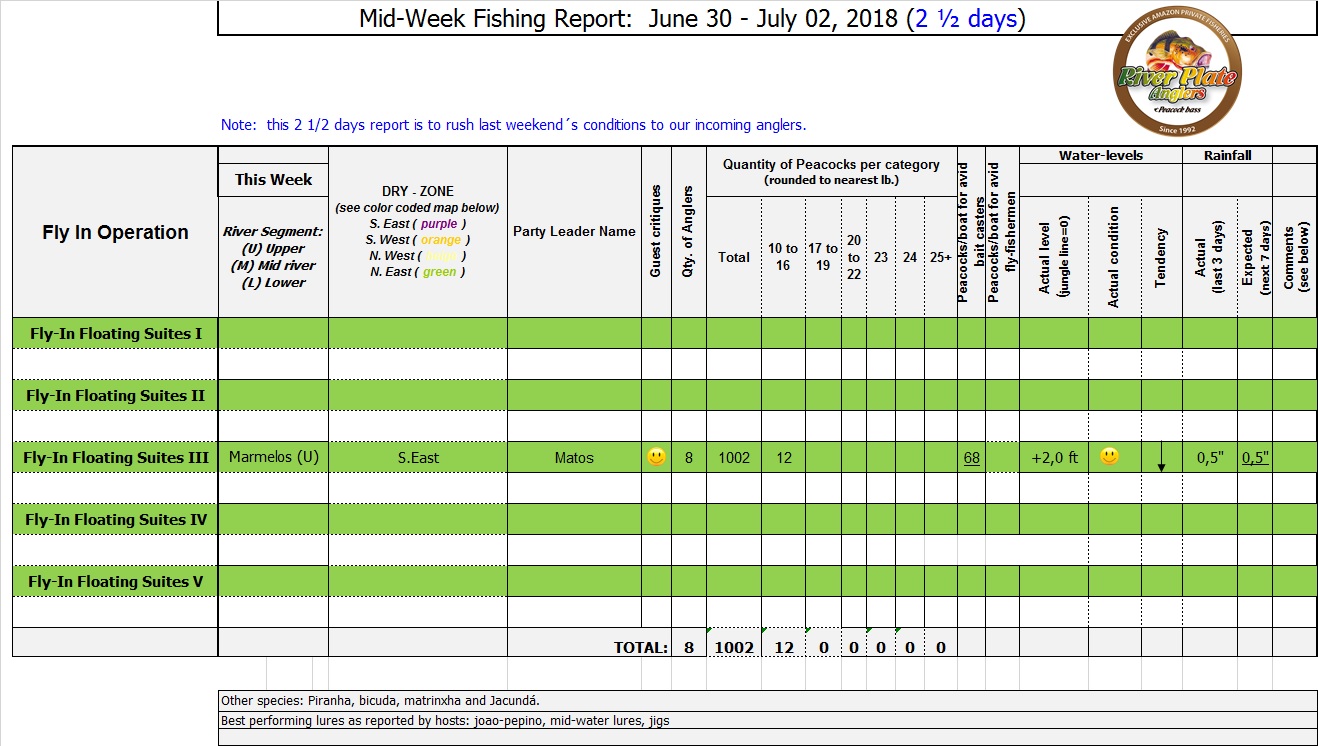 Previous week final count was 1.989 peacock bass the largest of which was a bit shy of 18lbs.