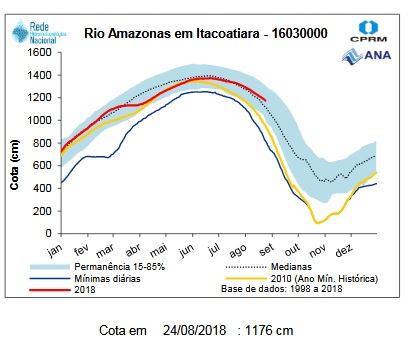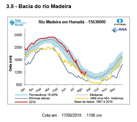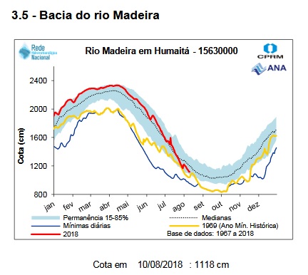 Water levels are at the optimal level and keep slowly descending (see graph below - Humaita). Weather forecast confirms tendency showing some mild tropical storms with no significant rainfall (see forecast below - Manicore).