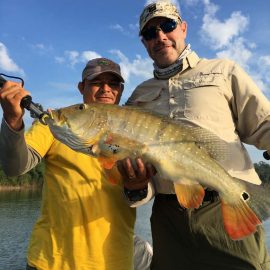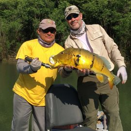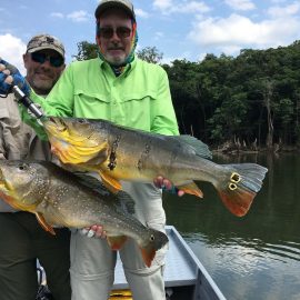 Last week we received the Barrantes group of 8 anglers for the last week of this season at our Marmelos private fishery. They enjoyed a great week landing 1.048 peacock bass the largest of which weighed 19lbs. as pictured below in the gallery. Bait-casters and fly-fishermen in the group were up the challenge and including in the basket also jacundas, bicudas, piranhas and several matrinxas.