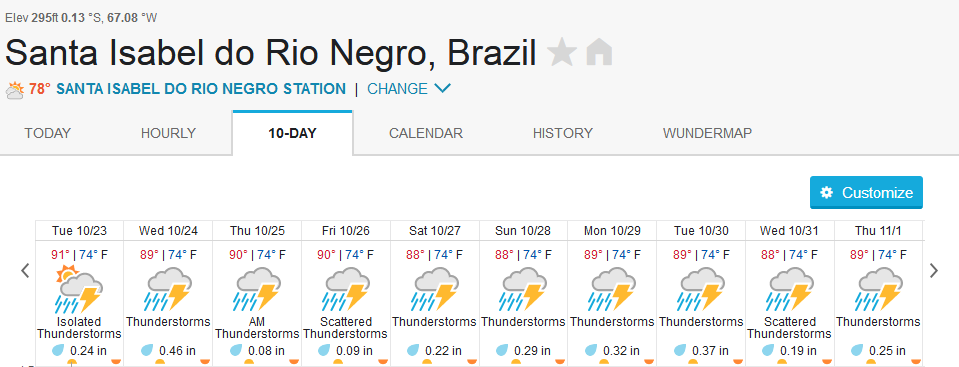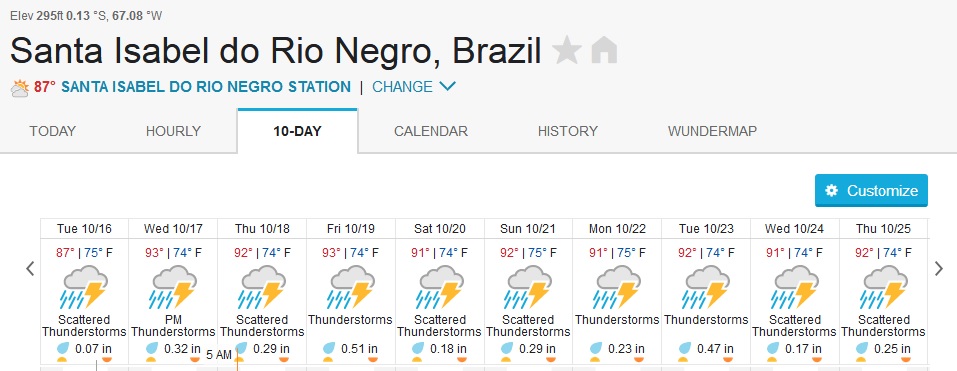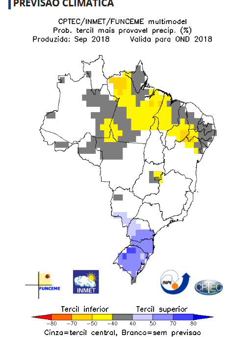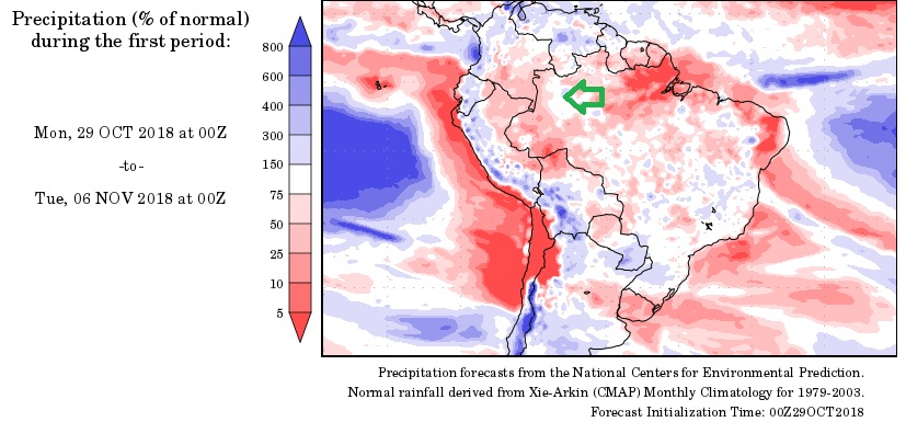 NOTE the above map is the rainfall forecast for Oct. Nov. ,and Dec. . The yellow area at the North affecting the Amazon basin indicates a 70% lower than expected rain fall in our fisheries , averting the chance of extreme high water levels for the rest of the season. Yes!