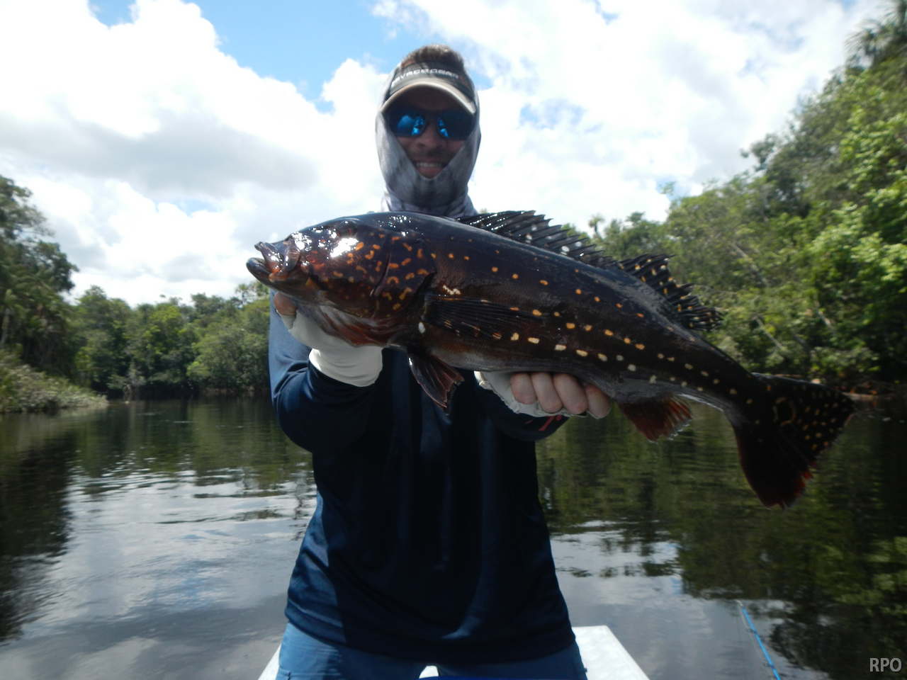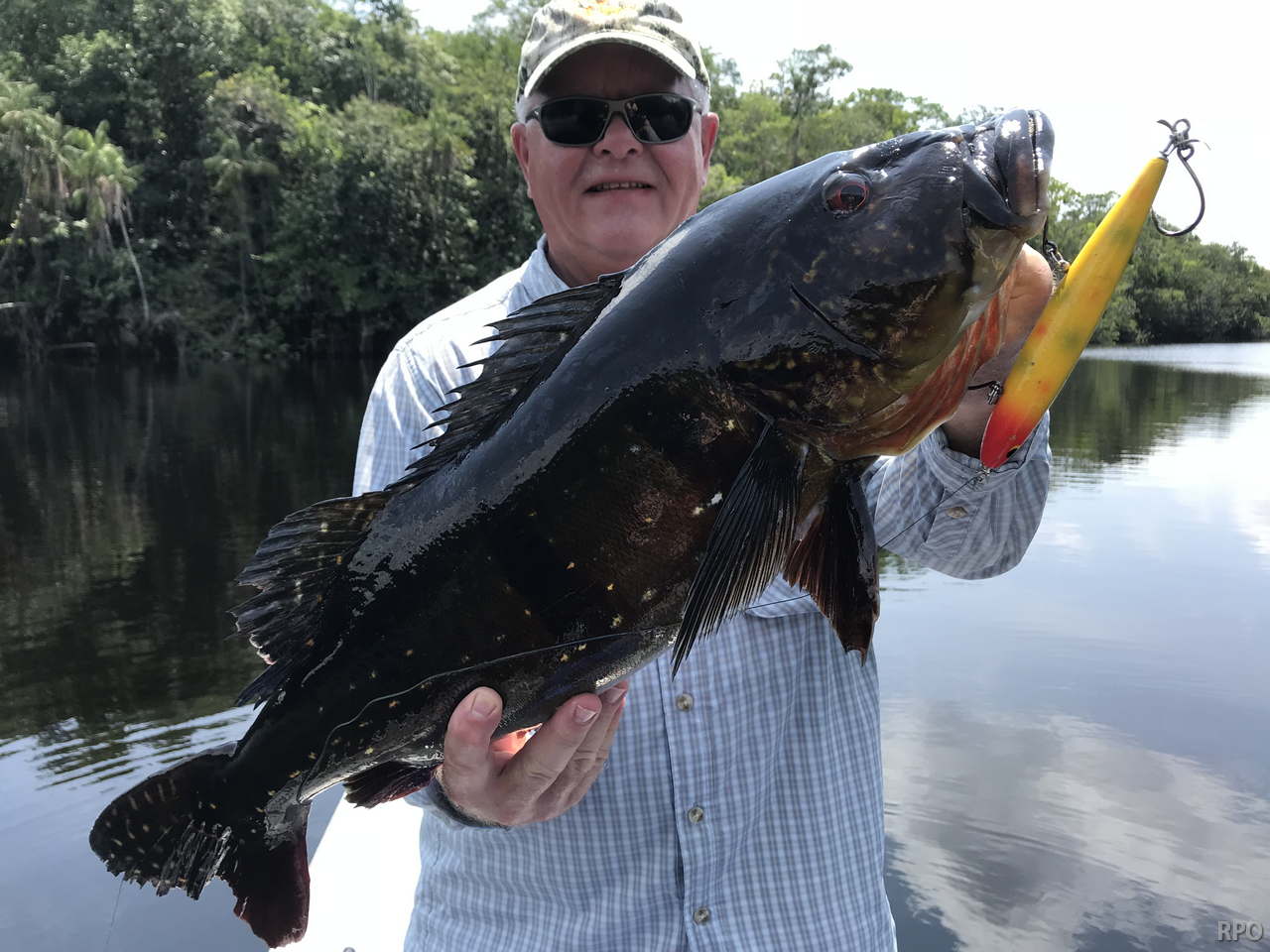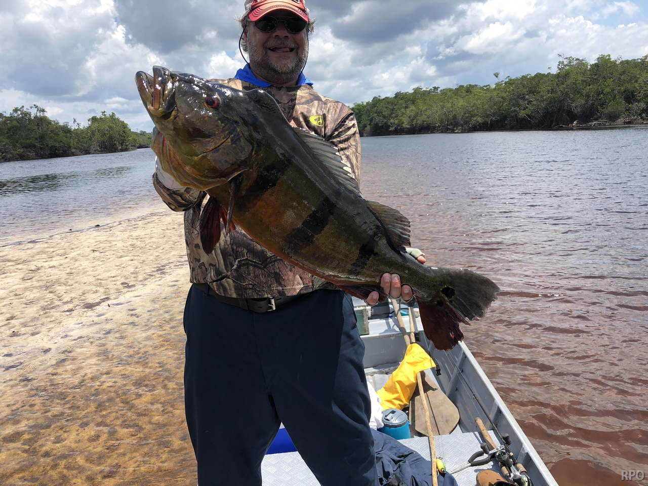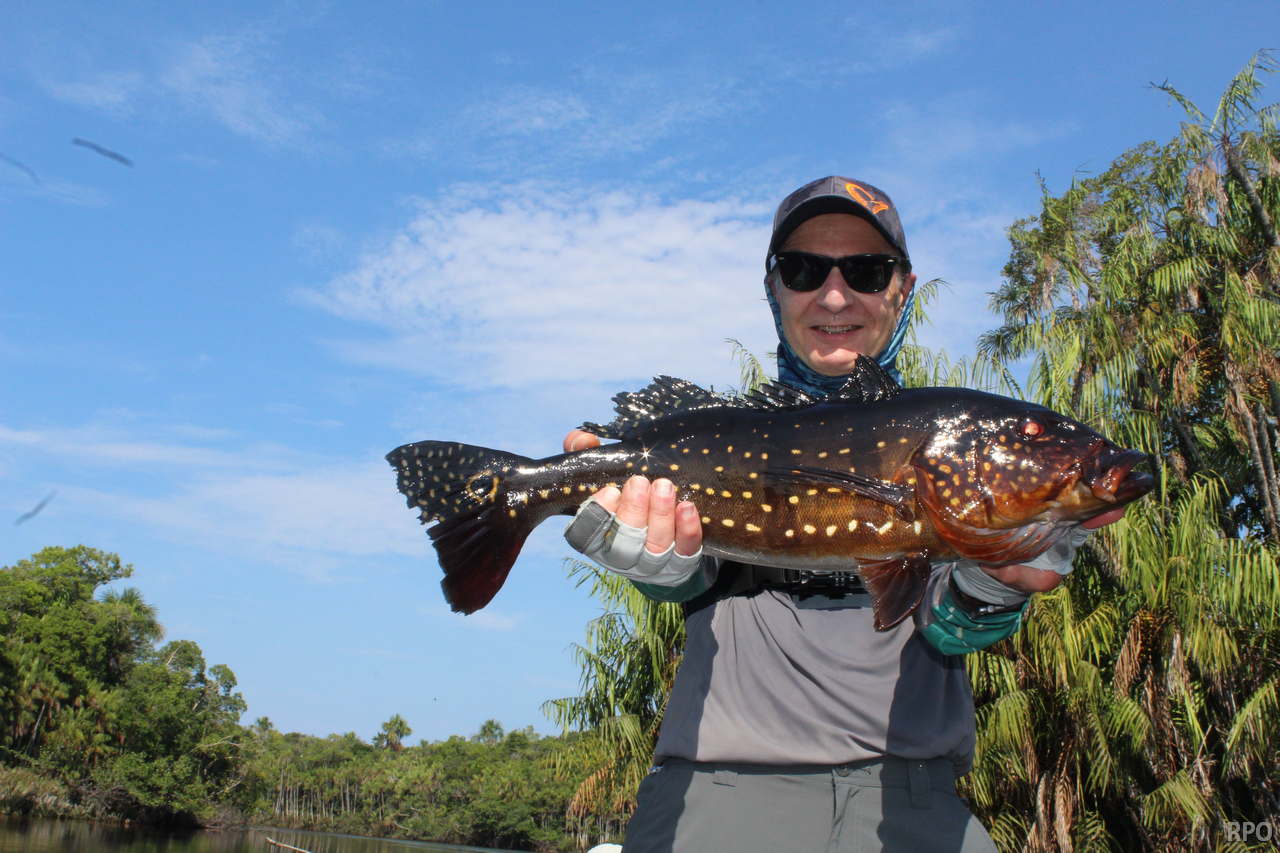 Week end´s tally (2 ½ days): Last Saturday we received the Kejoe group of 8 further upriver at the Roçado private fishery in Dry-Zone N.West, they had a good start with 222 landed peacock bass. However this never fished segment of the river presents fewer lagoons, hence the largest peacock so far is 19lbs.. As the Floating Suites Train continues to navigate to higher lagoon density areas larger trophies are expected.