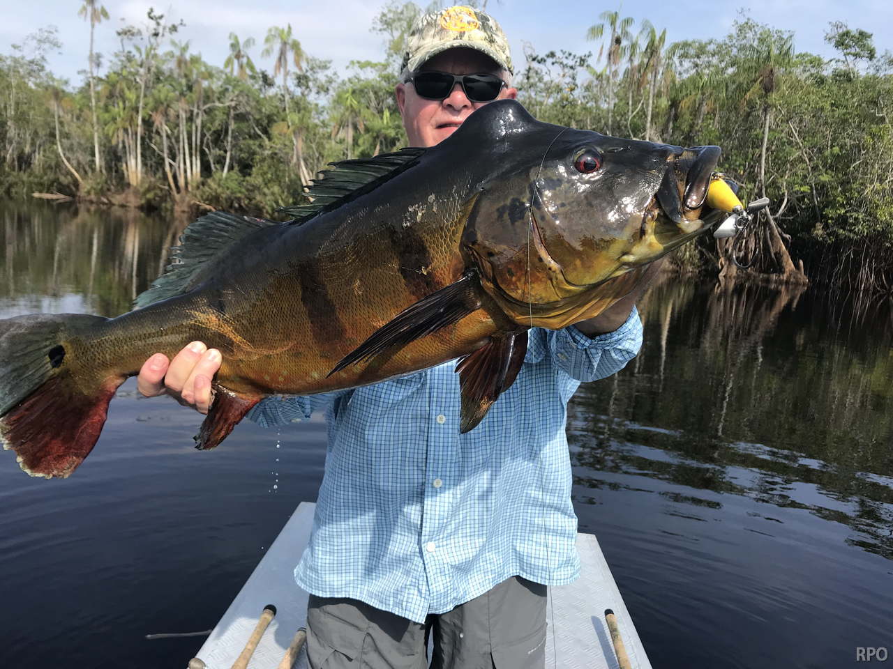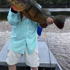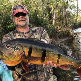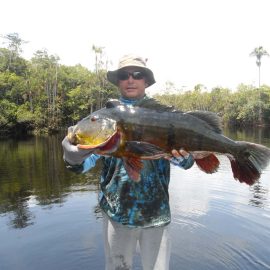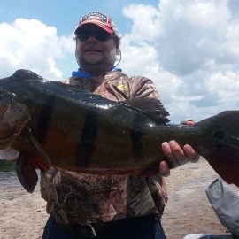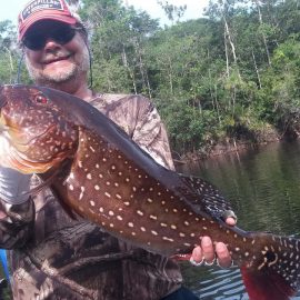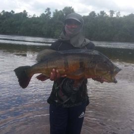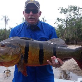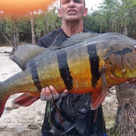 Last week’s tally ( 6 1/2 days) The Matupiri 16 anglers in Dry-Zone South West ended with 1689 landed peacock bass with 72 above the 10lbs mark ,and the Roçado´s 8 anglers Dry-Zone North West ended up with 438 of which 123 were over 10 lbs including a 17,1718,19,19 ……… 24lbs .