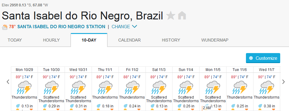Water levels keep dropping on the Negro River in the Santa Isabel area (Tapurucuara – see graph below).Something similar happens lower on the Negro in the Barcelos area. Rainfall is compensating the drainage. Therefore Roçado fishery is expected to maintain stable excellent fishing conditions in the coming week.