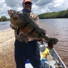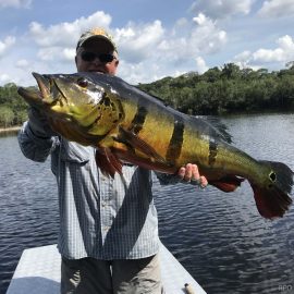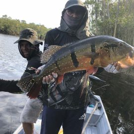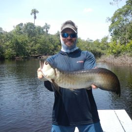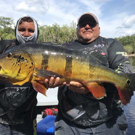 We also received the Oleg group of 7 that broke waters at the Omero lakes in the Branco basin where fishing conditions are now very good. They have landed 261 peacock bass during the weekend, plus several aruanas, tambaqui and pirarucus that challenged our guests skills and tackle.