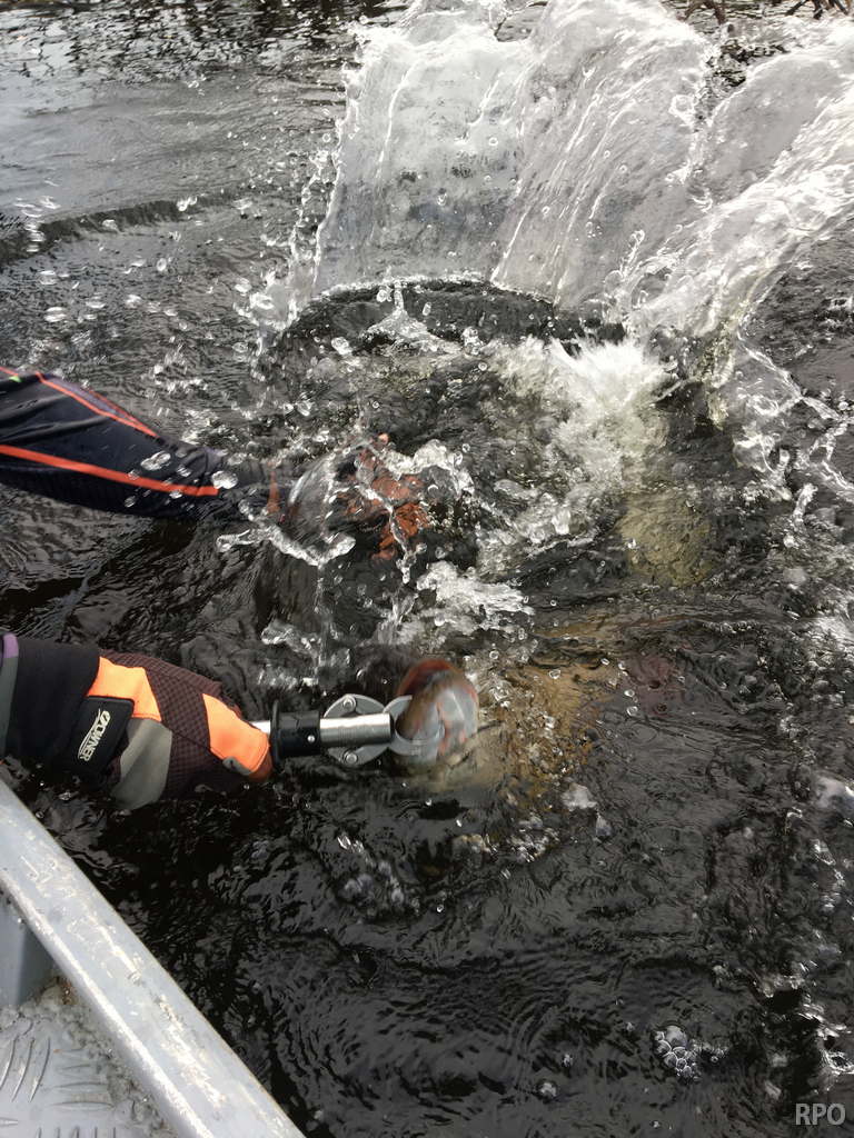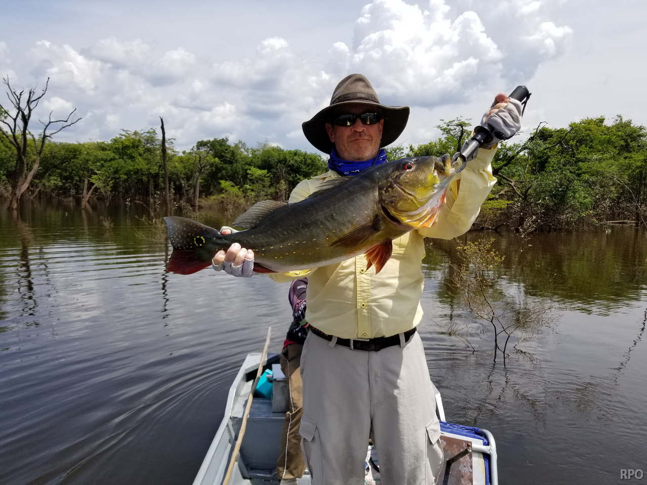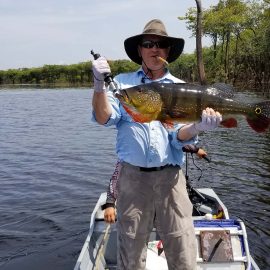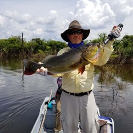 Last Saturday we received the Benson group who are breaking waters at our Igapó Açu river private fishery, Floating suites stationed in the lower part will be fishing their way upriver looking for the best fishing areas. The Ferreira group (also a small group of 6 anglers) arrived simultaneously to the upper Matupiri where they already set a benchmark trophy of almost 19lbs. in the last 2 ½ days. Although water levels continue to be a bit high they continue dropping and are very fishable.