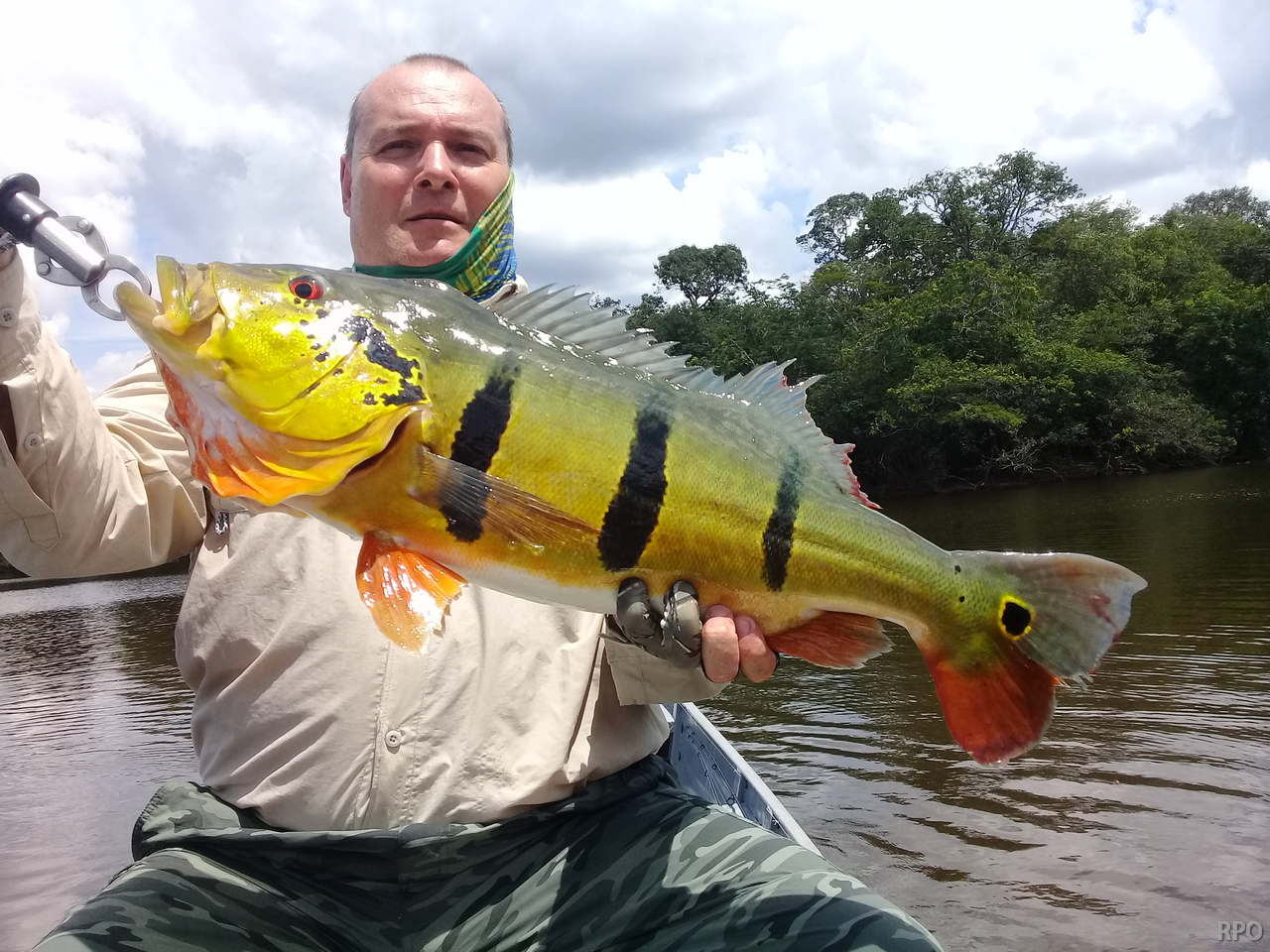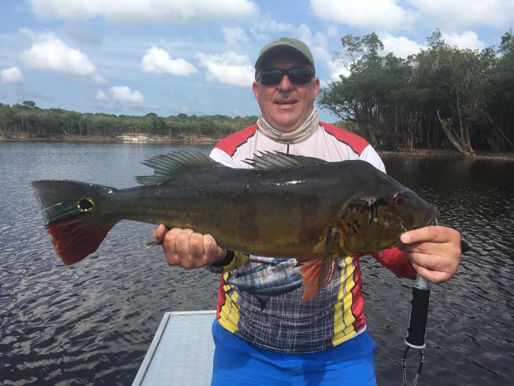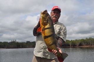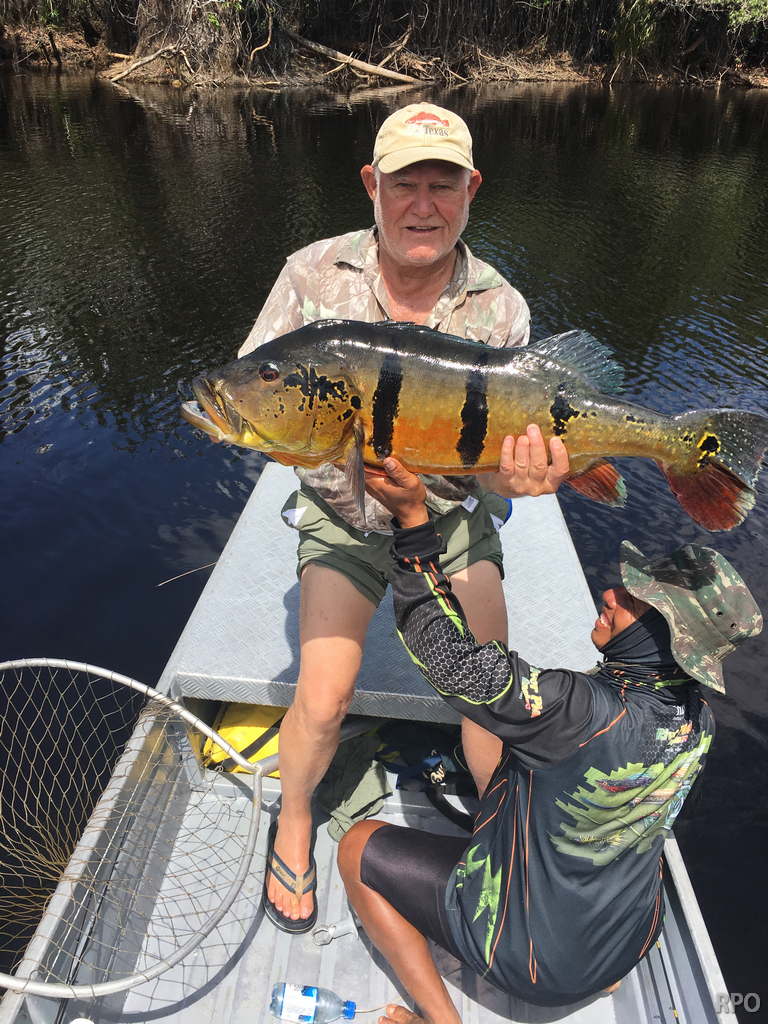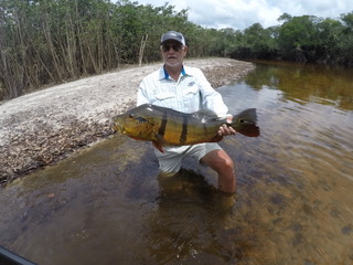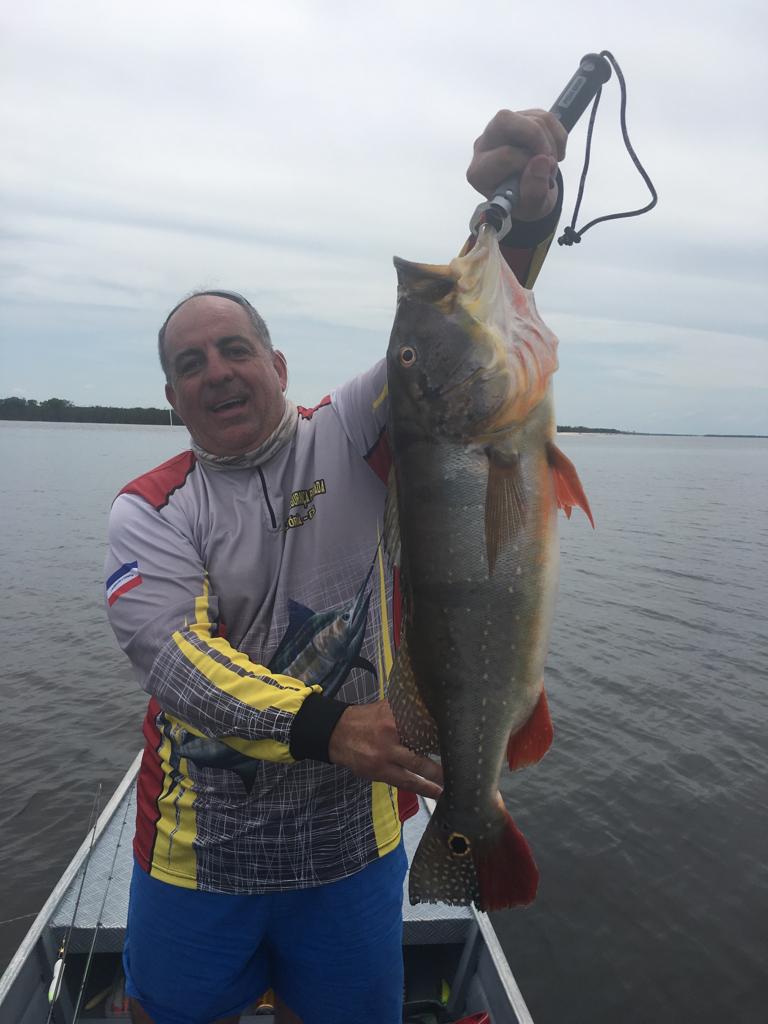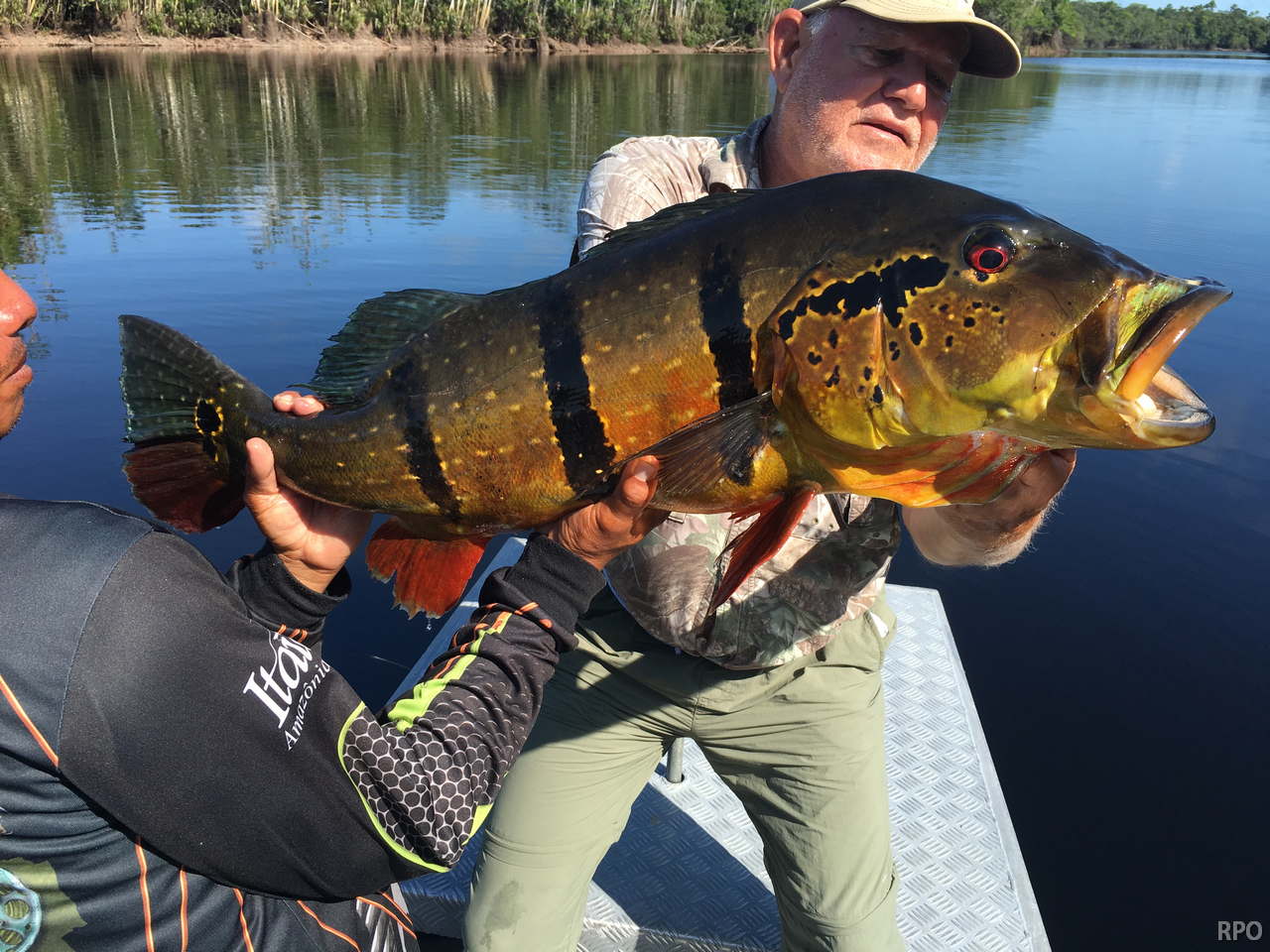 Roçado private fishery in Dry-Zone N.West - The Lenke group of 6 anglers arrived last Saturday, and have already landed 6 trophies above the 20lbs. mark, the largest of which was 24+lbs.. They have endured some heavy rain episodes and water levels have risen a bit, though yields remain unaffected. At the top of this report pls. find the video presenting Eduard Ivanov's impressive 90+ centimeter long peacock bass, landed the previous week, that is being evaluated for presentation to the IGFA , since it exceeds in length the current registered records for the Cichla Temensis, please check: http://wrec.igfa.org/WRecordsList.aspx?lc=AllTackleLength&cn=Peacock,%20speckled Omero Lakes in Dry-Zone N.West - The Leonetti group of 8 anglers visiting us from Argentina, have had a great start landing a mean of 57 peacock bass per boat per day, largest of which were 18lbs., again the basket included several other species as pirapitingas, aruanas, pirarucus, pirararas (red-tails), surubims, and black piranhas (see gallery below).