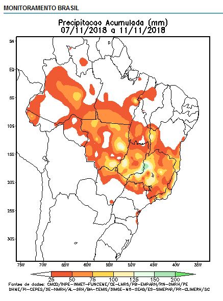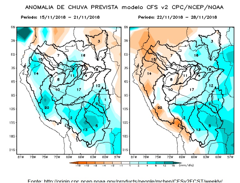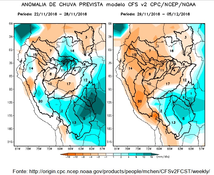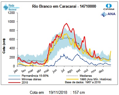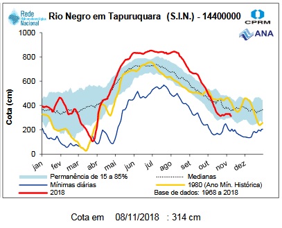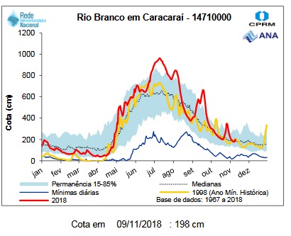 Rainfall forecast and water level report for the Caracarai station upriver from the Omero lakes confirm the dropping tendency and fishing conditions improvement in the Branco Basin.