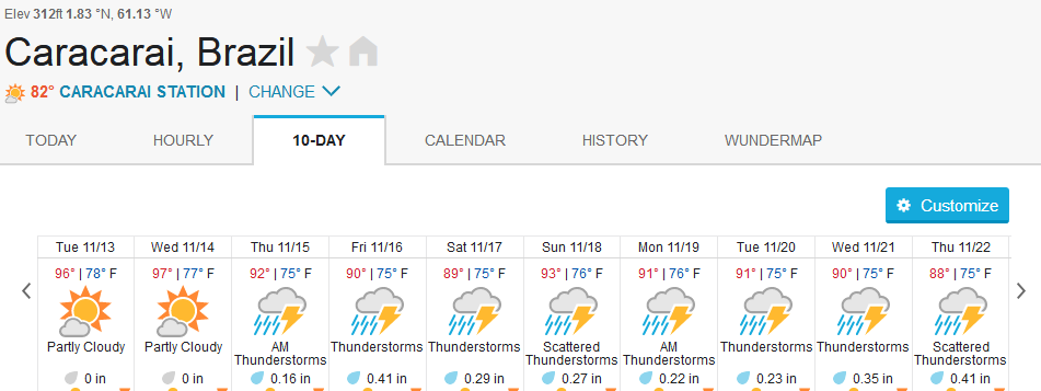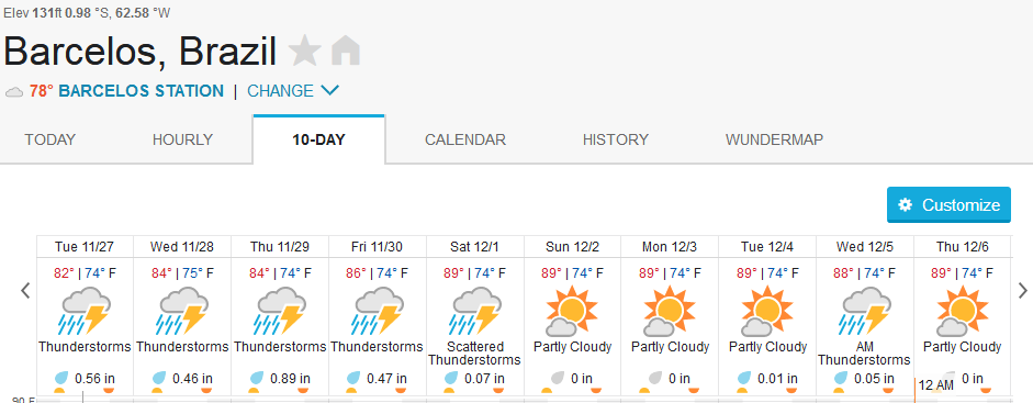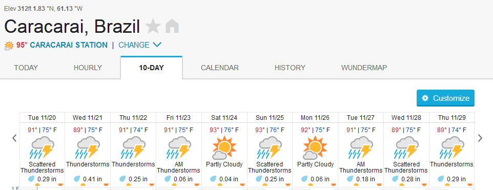Rainfall forecast and water level report for the Caracarai station upriver from the Omero lakes confirm the dropping tendency and good fishing conditions in the Branco Basin.