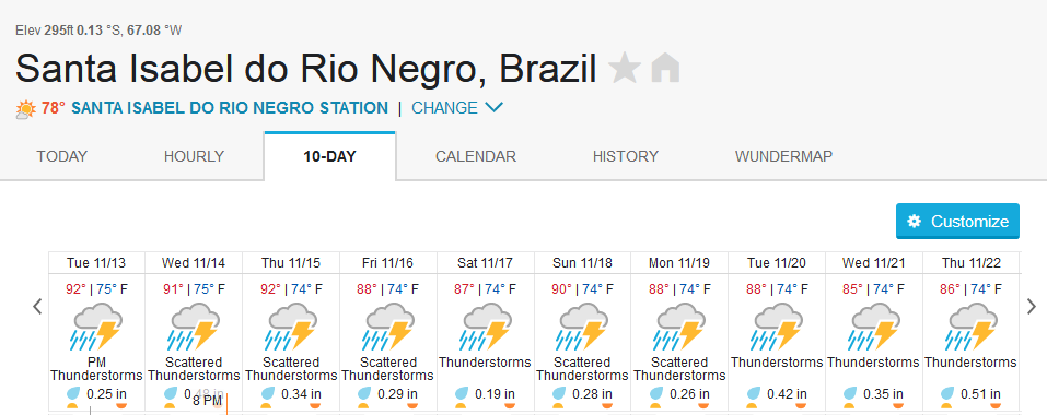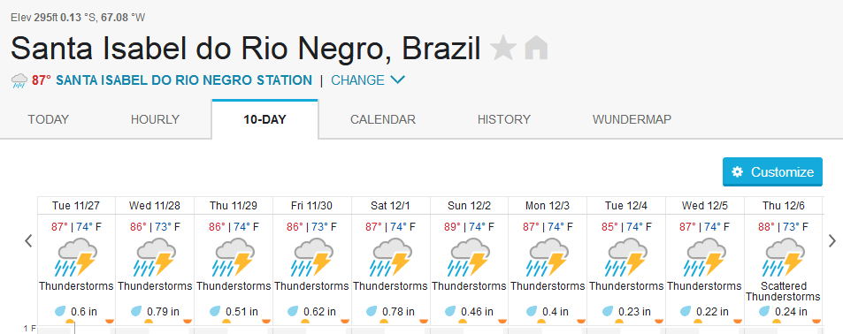 Water levels stabilized and slightly rising on the Negro River in the Santa Isabel area (Tapurucuara – see graph below). Levels have also risen a bit in the Negro in the Barcelos area. Rainfall keeps overcoming the drainage; however, the Roçado fishery is expected to maintain very good fishing conditions in the coming week.