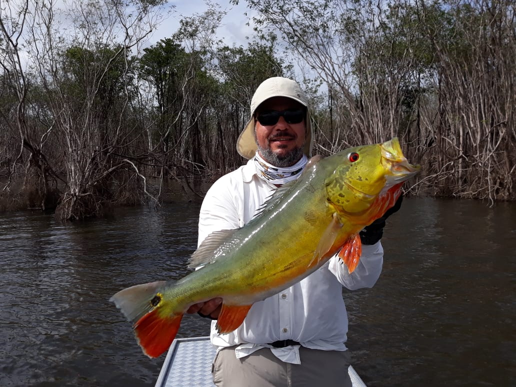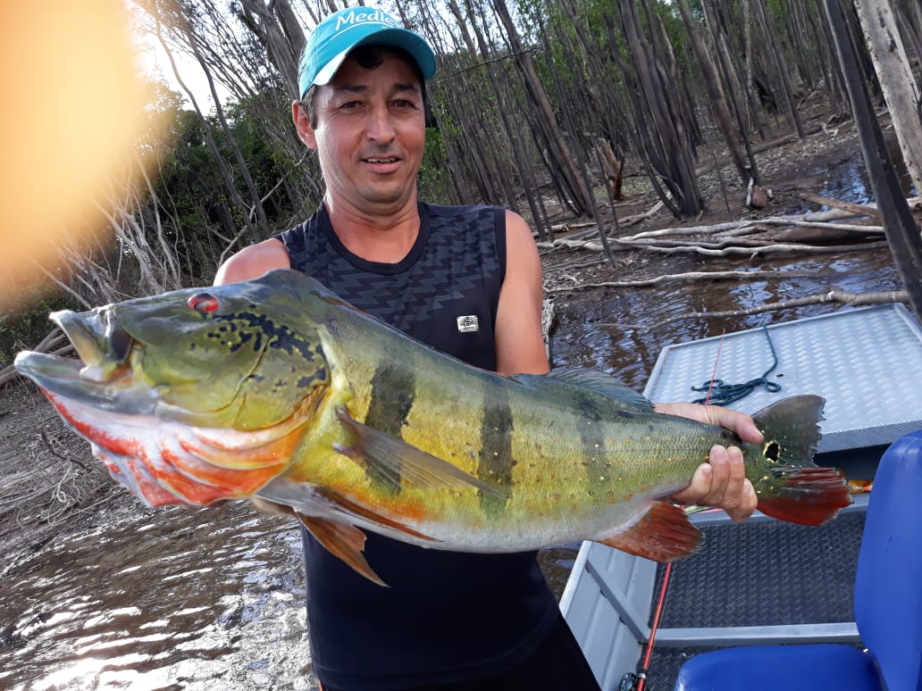 Roçado private fishery in Dry-Zone N.West – The Henry group of 7 anglers arrived last weekend and had a slow start with 60 landed peacock bass, though camp reports that they are following a trophy oriented strategy focused on sizes more than quantities. They endured some rain episodes and the largest peacock bass weighed 19lbs. Fishing conditions are still good although water levels have risen a bit and more rain is expected on the coming days. . Xeruini river in Dry-Zone N.West – The Case group of 8 anglers arrived on Saturday landing 318 peacock bass in just 2 1/2 days. Largest peacock bass weighed 15lbs. and best performing lures are propellers and top water lures. Jufaris (upper and mid) in Dry-Zone N.West – Last Saturday the Zucker group of 6 anglers arrived to our single occupancy floating suites in the upper part of the river enjoying a great start with 273 landed peacock bass largest of which weighed 17lbs, also come spectacular aruanas made the basket. On the mid section of the river the Roger group of 7 anglers landed 560 peacock bass in just 2 1/2 days enduring some heavy rain episodes also.