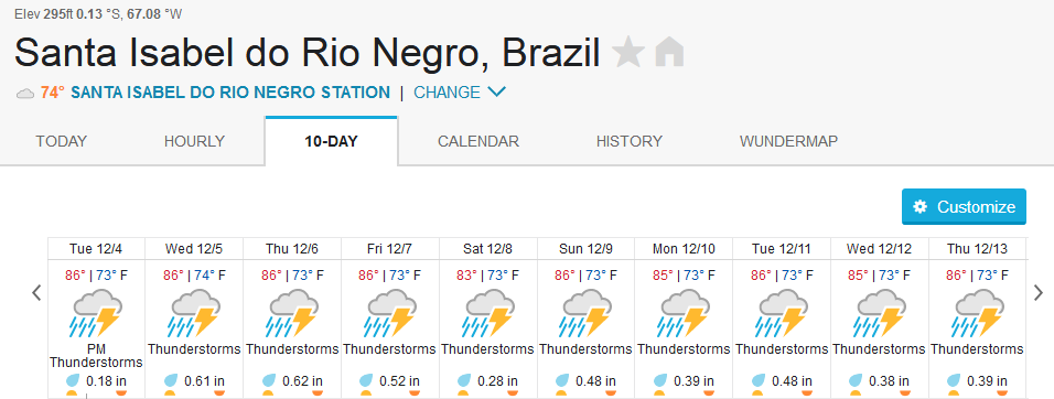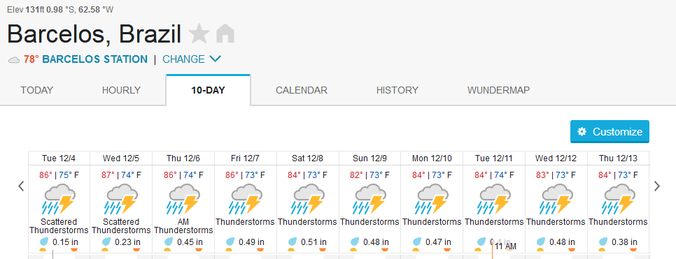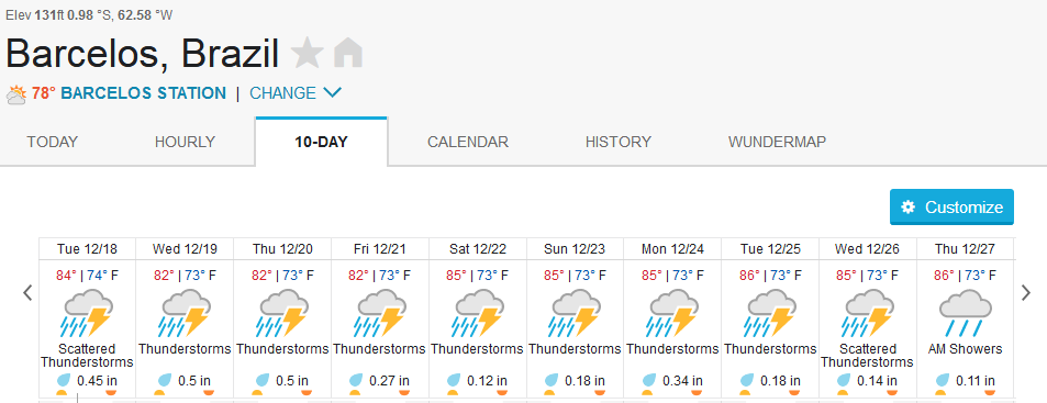 Some normal tropical rainstorms for the rest of the week expected at the Barcelos area improving towards the weekend.