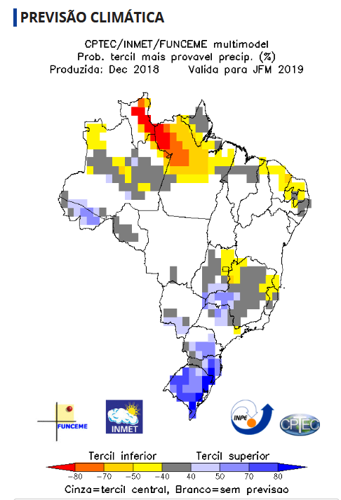 Find below the quarterly rainfall for Feb, Mar, Apr showing that we should not expect any significant rain episodes, in our area of interest, on the contrary levels will be below the normal historical levels. A mild El Niño impact is expected on this regard.