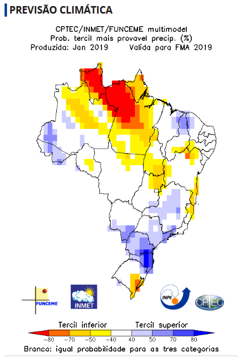 Find below the quarterly rainfall for Feb, Mar, Apr showing that we should not expect any significant rain episodes, in our area of interest, on the contrary levels will be below the normal historical levels. A mild El Niño impact is expected on this regard.