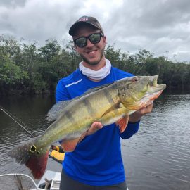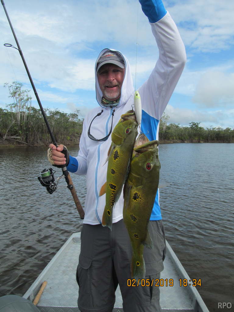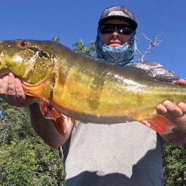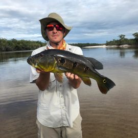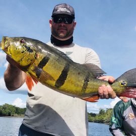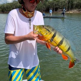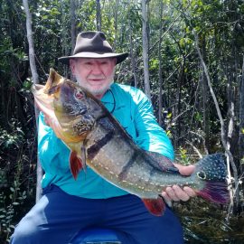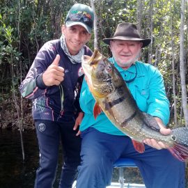 Kabori fishery in Dry-Zone N. East -: The Hunt group arrived last Saturday and although the water levels are a bit low they had a good start with a reasonable size mix. Weather forecast looks good for the coming days and we are evaluating fishing conditions for the coming week. id Upper -Xeruini fishery in Dry-Zone N. East -: The Bahr group also had a good start with a nice size mix in the bag. Best working reported lures are perversas, joao pepino, propellers and jigs. Levels are a bit low and keep dropping and weather forecast confirms the tendency. Itapará river in Dry-Zone N. East – : Trophy fest at our Itapará private fishery, starting last week with a 21 pounder, and 5 more above the 17lbs mark. This week started with a blast, check the above table for the Bodnar group. Water levels are a bit below the "0" marker and dropping, fishing conditions are expected to be excellent in the coming days. Upper Jufaris in Dry-Zone N.East – : Our single occupancy suites received last Saturday 7 anglers in the Willemborg group.They started with 247 landed peacock bass, the largest of which weighed over 17lbs. Good fishing conditions are expected to continue in the coming days with water levels dropping slowly. Tupana river/ Omero in Dry-Zone N.East – : Floating suites formation IV moved to the Tupana river where they received the Asbell group of 6 anglers, that had a great start of the week with 211 landed peacock bass. Water levels are a bit low but very fishable.