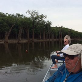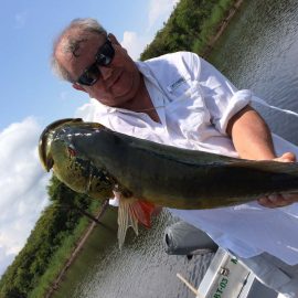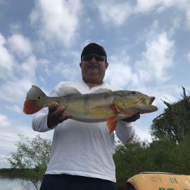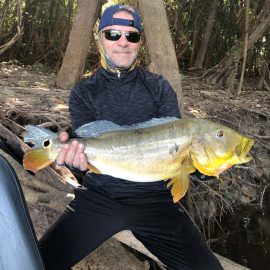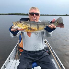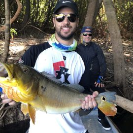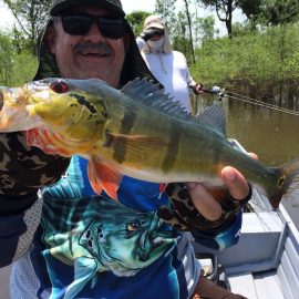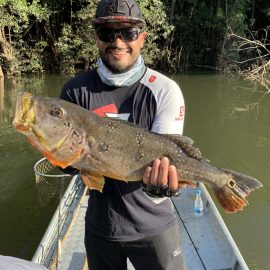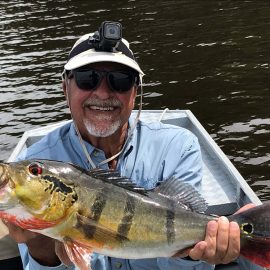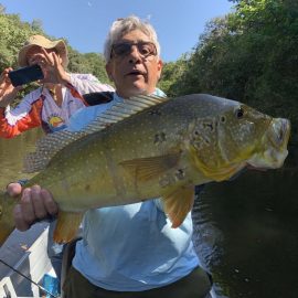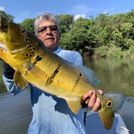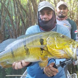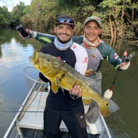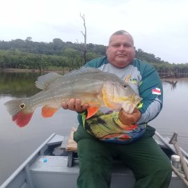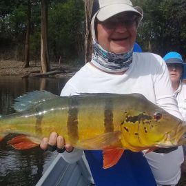 Matupiri fishery in Dry-Zone S. West -: Last Saturday we received the Lico group of 12 anglers in our Floating cabins fishing the mid Matupiri. They enjoyed good weather conditions with only one minor heavy rain episode, their fish count exceeded the 550 landed peacock bass, no significant trophies though. Rain forecast is good and dropping tendency is expected to accelerate with the good weather, water levels are still a bit high but nearing the optimum definitely very fishable. Last week the Rizzo group anglers exceeded the 100 landed peacock bas per angler in the week. Roçado fishery in Dry-Zone N. West -: This fishery is in standby status for this week, this week anglers were redirected to Dry Zone N.East. Last week the Lyle group, landed 5 trophies above the 20lbs mark, though they endured heavy rains episodes throughout the week. Water levels reverted the dropping tendency, forecast is improving and river is expected to resume the dropping tendency in the next days. Omero lakes in Dry-Zone N. East -: This week after scouting the area we have moved our Floating Suites Nr.3 to the Omero Lakes fishery that present excellent fishing conditions, proving one more time the importance of being able to offer the best available waters in the basin to our visiting anglers, having several private water options to choose from. The Crossland group arrived last Saturday and had an excellent start with 752 landed peacocks within a mixed bag of species including aruanas, pirarucus, etc. Fine weather and good water levels expected in the coming days.