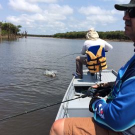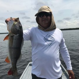 Matupiri fishery in Dry-Zone S. West -: Last Saturday we received the Bell Jr. group of 6 anglers in our Floating cabins fishing the mid Matupiri; Dennis Gardisser is experiencing this fishery for the first time in this Season´s visit. They enjoyed good weather conditions, their fish count exceeded the 350 landed peacock bass, no significant trophies though. Rain forecast is good and dropping tendency is expected to accelerate with the good weather, water levels are still a bit high but nearing the optimum definitely very fishable. Last week the Lico group anglers basket included 1.447 landed peacock bass in the week. Roçado fishery in Dry-Zone N. West -: This fishery continues in standby status for this week. Water levels resumed the dropping tendency, forecast is good and river is expected to enhance the dropping tendency in the next days. Omero lakes in Dry-Zone N. East -: This weekend we received the Key group, who enjoyed excellent fishing conditions landing 618 peacock bass in just 2 1/2 days with the largest weighing 18lbs together with a mixed bag that included cachorra, piranha, jacunda, cara-açu, traíra, pirara and pirapitinga. Best performing lures are mid water as reported by camp. Last week the Crossland group had an excellent tally with 1.628 landed peacocks, largest of which weighed 18lbs and within a mixed bag of species including aruanas, pirarucus, etc. Fine weather and good water levels expected in the coming days.