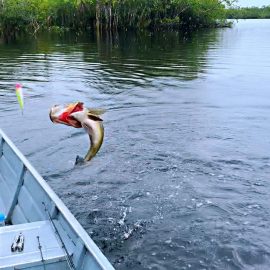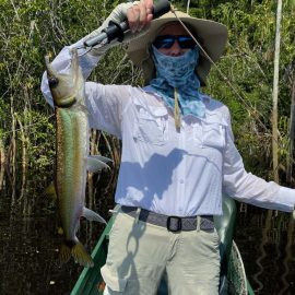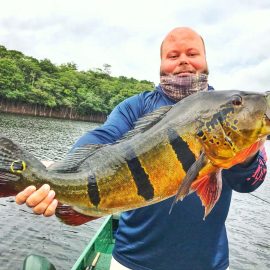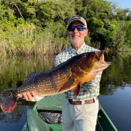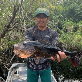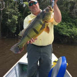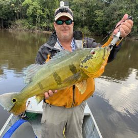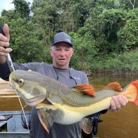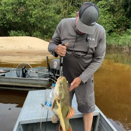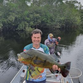 Omero lakes in Dry-Zone N. East -: Last weekend we received the Cheslak group of 8 anglers, landing 341 peacock bass in just 2 1/2. Group endured some mild rain episodes during the weekend. Fishery continues to yield a varied assortment of sporting species. Itapará in Dry-Zone N. East -: This Saturday we received the Aroratti group of 6 anglers, landing 198 peacock bass in just 2 1/2 days. Group endured some mild rain episodes during the weekend, water levels a bit on the high side but dropping. Maú river fishery in Dry-Zone N. East -: This weekend we received the Monroe group of 6 anglers, who had a good start landing 211 peacock bass, largest of which weighed 20 lbs. Water levels still a bit on the high side, but very fishable. Some mild rain episodes during the weekend and some more expected towards the end of the week.Best performing lure as reported by the host is perversa. Check last week´s 100 lbs pirarucú caught by the Murphy group, photo at the top of this report. Upper Jufaris fishery in Dry-Zone N. East -: Last Saturday we received the Low group of 6 anglers, they endured some significant rain episodes and they had a good start landing 195 peacock bass. Robert and Sean Conway are repeating this fishery one more time. Last week´s Galloway group largest peacock weighed 20 lbs. Rapala subwalk is reported as the best performing lure. Some rain episodes are expected towards the end of the week. Kabori fishery in Dry-Zone N. East -: Breaking water at this fishery last weekend with the Blonskiy group of 8 anglers, 6 of them repeating this adventure. Water levels are a bit on the high side but very fishable and dropping. Some mild rain episodes during the weekend and some more expected towards the weekend. Joao Pepino is the star lure this week.