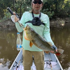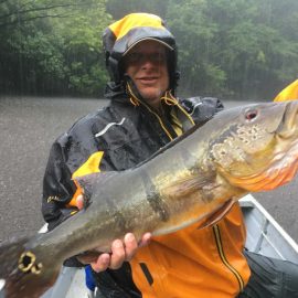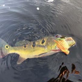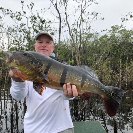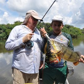 Omero lakes in Dry-Zone N. East -: Last weekend we received the Luft group of 12 anglers, landing 226 peacock bass in just 2 1/2 days and enduring some rain episodes. Host reports good top water action propellers being the favored lure. Fishery continues to yield a varied assortment of sporting species, water levels are dropping and expected to get below the optimum in the coming days. Itapará in Dry-Zone N. East -: This Saturday we received the Roig Moon group group of 8 anglers, including Carlos Arrea and Federico Matamoros who are visiting us one more time. Several fly-fishemen in the group who, all considered, had a good start landing 115 peacock bass. Water levels still a bit on the high side, dropping, but very fishable. Some heavy rain episodes during the weekend and some more expected Wednesday an Thursday. Upper Jufaris fishery in Dry-Zone N. East -: Last Saturday we received the Geraci group of 7 anglers, they endured some significant rain episodes and they had a good start landing 248 peacock bass. Omar Borghello and Ouida Gernentz are coming to our operations one more time. Group endured some significant rain episodes and more are expected Wednesday and Thursday clearing towards the end of the week. Water levels are a bit high but very fishable, camp host reports that mid water lures are working best in this scenario. Kabori fishery in Dry-Zone N. East -: The Kenshima group of 7 arrived last Saturday and started the week landing 155 peacock bass, largest of which weighed 18lbs. Water levels are a bit on the high side but very fishable and dropping. Some heavy rain is expected tomorrow and Thursday. Joao Pepino and wood choppers are the star lures this week.