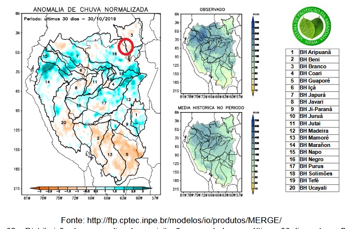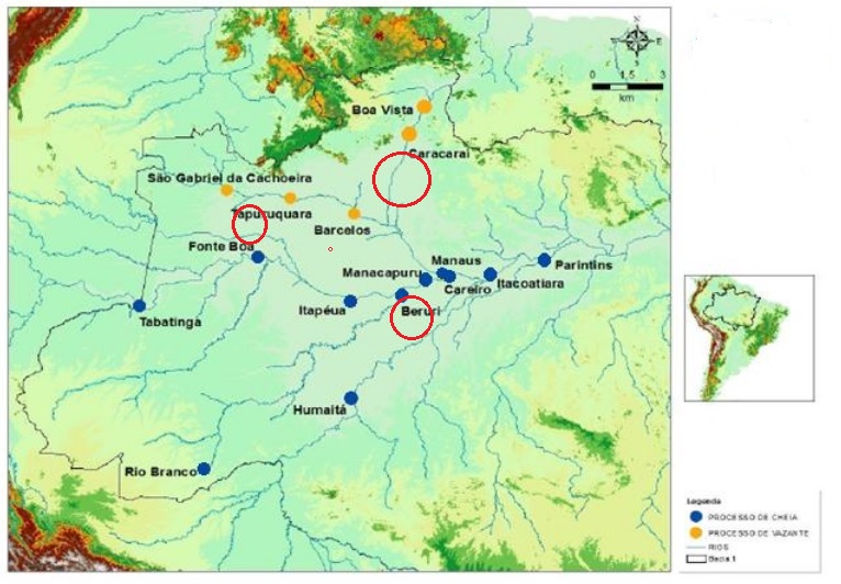 Water level measurements at the Tapurucuara station (see below) continue to be within the historical parameters. The Roçado fishery drains directly at this station.Please see red circle in stations map above.