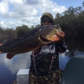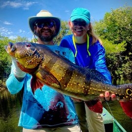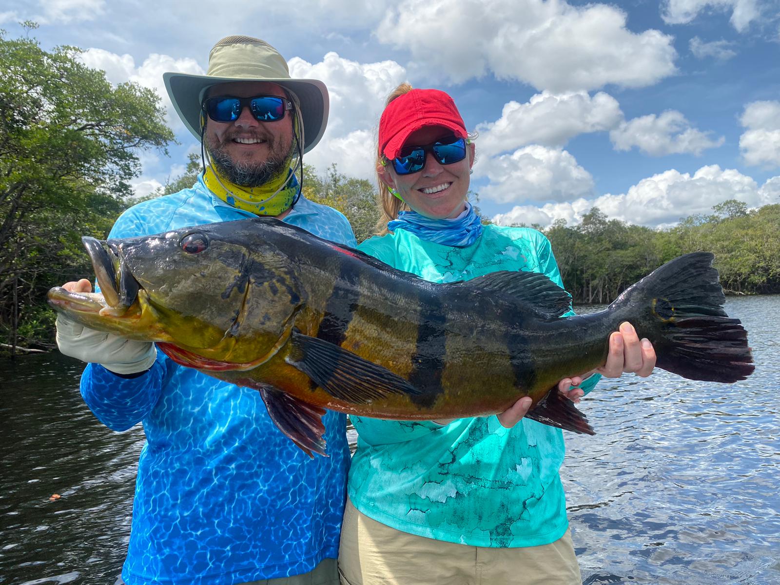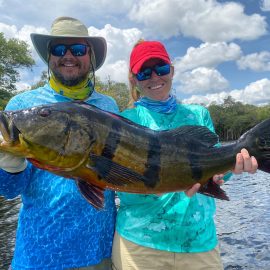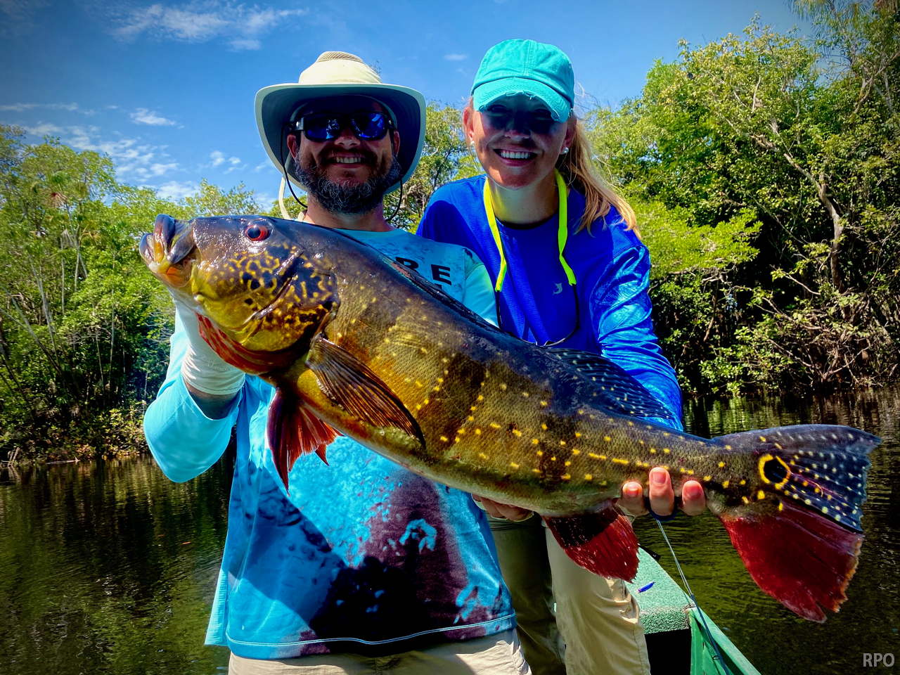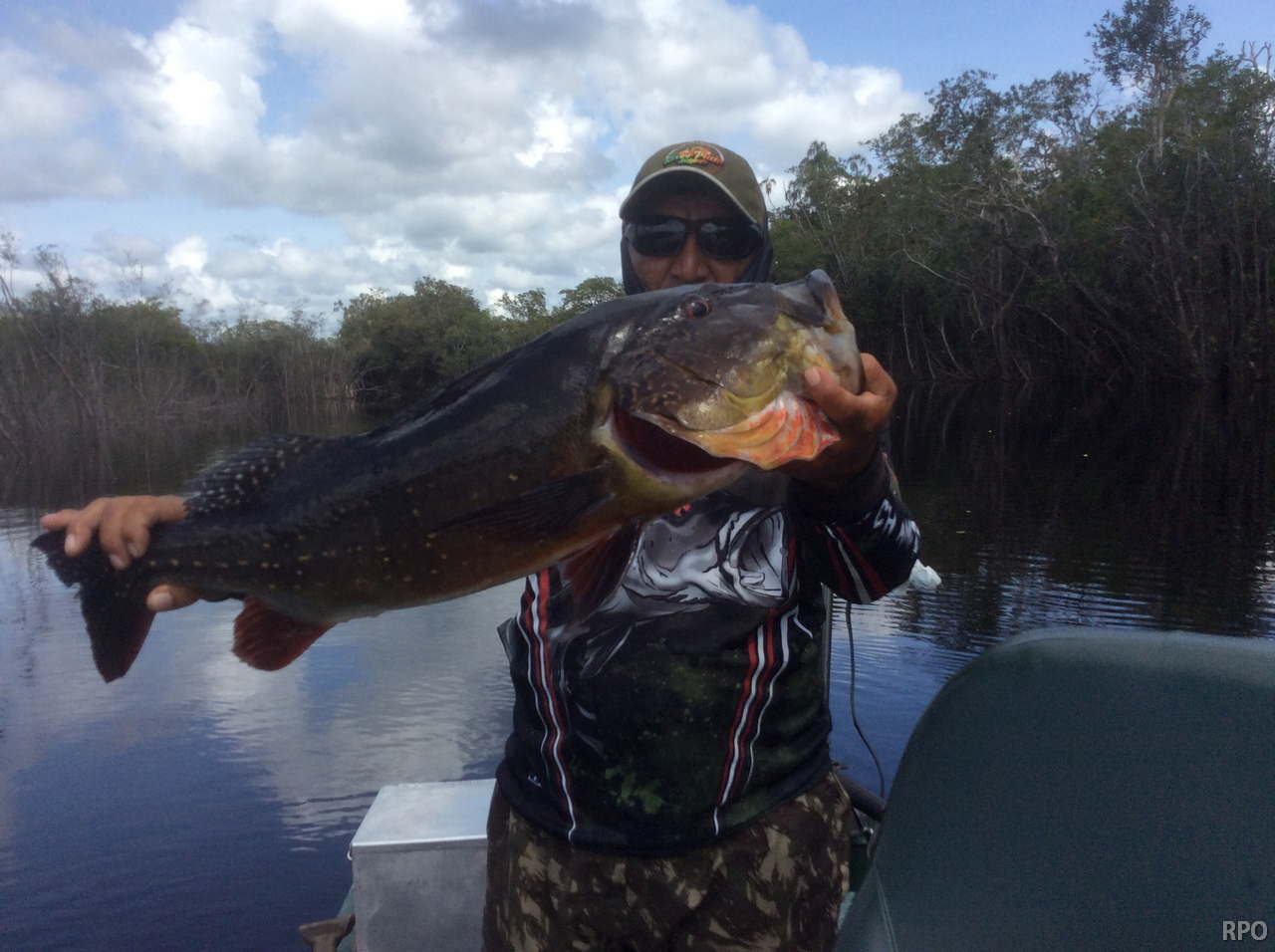 Omero lakes in Dry-Zone N. East -: Last weekend we received the Vyacheslav group of 6 anglers, landing 415 peacock bass in just 2 1/2 days largest of which weighed 18lbs. Host reports mid water lures (yo-zuri, joao pepino) and jigs are working best. Fishery continues to yield an amazing assortment of species, that includes, Pirarucu, Aruanã, matrinxã, pirapitinga, piranha, traíra e bicuda. After increasing a bit due to last fortnights rainfall, water levels are dropping again which has been beneficial yieldwise. Rainfall forecast shows no significant rain episodes in the days to come. Itapará in Dry-Zone N. East -: Camp is in standby, water levels resumed dropping tendency and camp is moving further upriver towards the best available waters near the fountain head. Rainfall forecast further reinforces positive forecast for next week. Lower Jufaris fishery in Dry-Zone N. East -: Last Saturday we received the Moreira group of 8 anglers, including Rodrigo Moreira dn Fernando Quevedo visiting us one more time. Unfortunately communication with this operation is not working and weekend data is unavailable at this time. Weather conditions are fine for the week according to forecast appearing below. Upper Jufaris fishery in Dry-Zone N. West -: Last Sunday we received the Garret group of 6 anglers. They had a good start landing 148 peacock bass only fishing 1 1/2 day. Forecast for the rest of the week looks good though water levels are a bit on the high side after last week´s rain episodes, yet they are very fishable. Camp host reports that mid water lures, rapalas and yozuri are working best in this scenario. Kabori fishery in Dry-Zone N. East -: Camp is in standby and navigating upriver seeking the very best available waters in this fishery for the group arriving next Saturday.