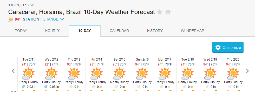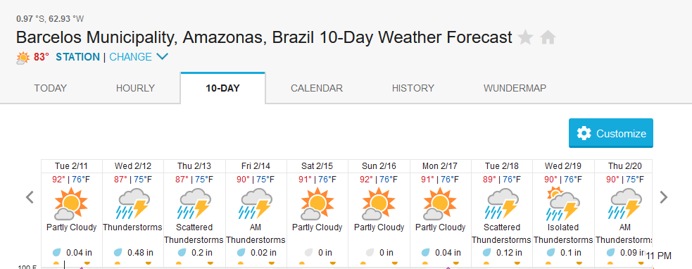 Xeruini in Dry-Zone N. East –: Last weekend we received the Blocker group of 8 anglers who are enjoying great fishing conditions and had a good start landing over 270 peacock bass, largest of which weighed 18lbs. River keeps dropping and fishing conditions are expected to be good in the coming days. Jufaris in Dry-Zone N. East -: The Sprague group of 6 arrived last Saturday to the Upper part of this fishery, they landed over 300 peacock bass. Excellent fishing conditions during the weekend and forecast for the coming days without any significant rain episodes (pls. see below). Great top water action, ideal for fly fishing. Itapará in Dry-Zone N. East -: This week we are hosting the Biegler group of 8 anglers. They are enjoying perfect fishing conditions and have already landed over 500 peacock bass, largest of which weighed above 18lbs. Water levels keep dropping, fishing conditions for the coming days are expected to be excellent (pls. see forecast below).