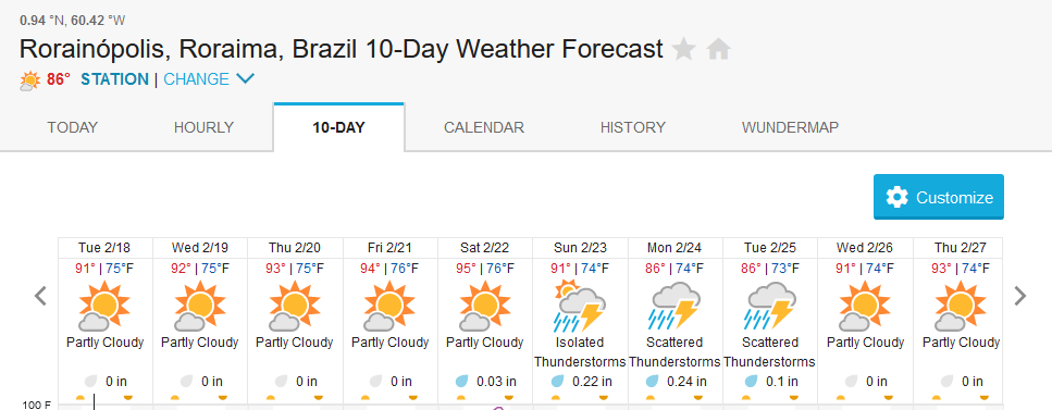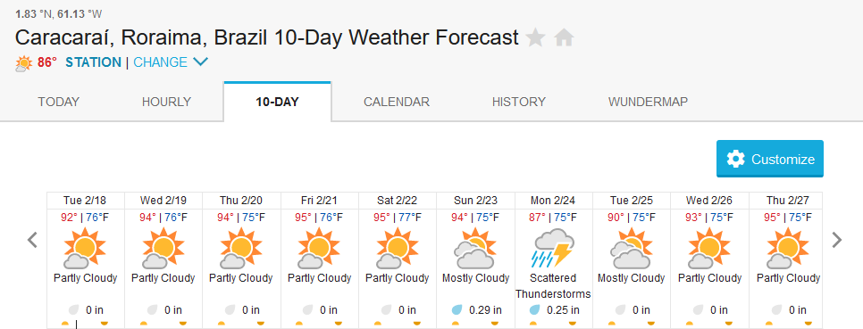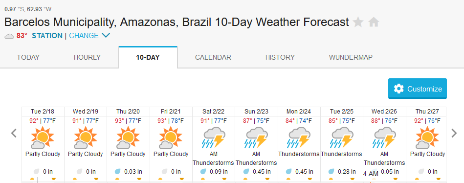 Xeruini in Dry-Zone N. East –: Last weekend we received the Dudley group of 8 anglers who are enjoying great fishing conditions and had a good start landing over 190 peacock bass. River keeps dropping and fishing conditions are expected to be good in the coming days. Jufaris in Dry-Zone N. East -: The Elder group of 6 are fishing in the Upper part of this fishery, exceeding the 200 peacock bass. Excellent fishing conditions during the weekend and forecast for the coming days without any significant rain episodes (pls. see below). Great top water action. Itapará in Dry-Zone N. East -: This week we are hosting the Smith group of 8 anglers. They are enjoying perfect fishing conditions and have already landed over 30 peacock bass, largest of which weighed above 18lbs. Water levels keep dropping, fishing conditions for the coming days are expected to be excellent (pls. see forecast below).