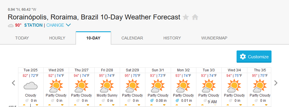 The triangle within Barcelos, Caracaraí and Rorainopolis in the area of influence of our Xeruini, Jufaris and Itapará fisheries forecasts above showing almost no rain episodes in the coming days, some rain episodes towards the weekend that will affect the incoming groups mildly.