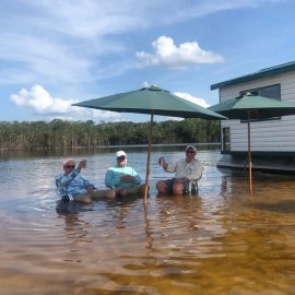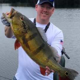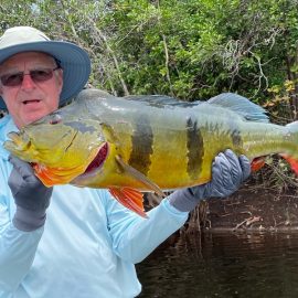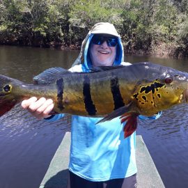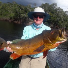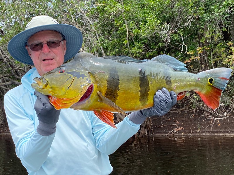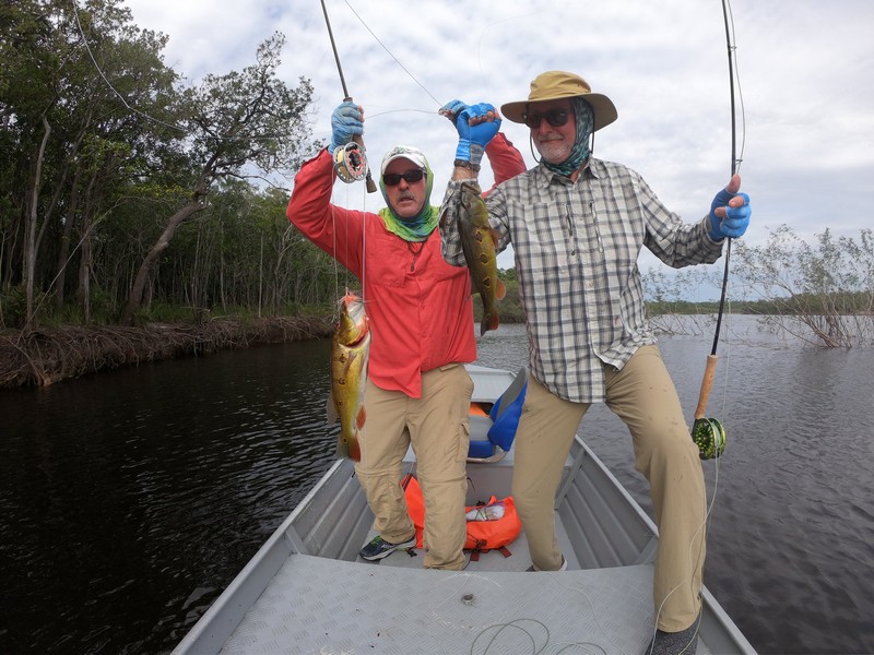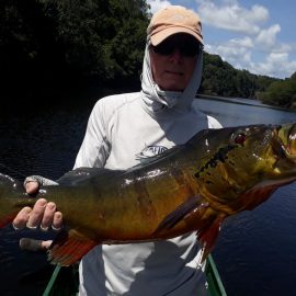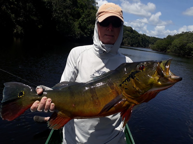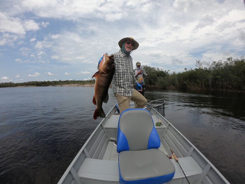 Xeruini in Dry-Zone N. East –: Last weekend two groups ( Hamlin and Best) landed over 450 peacock bass, largest trophy caught and released weighed 22 lbs. Water levels are almost at jungle level and weather has been perfect and fishing conditions are expected to continue during the rest of the week (pls. see below). Several fly-fishermen in these groups. Jufaris in Dry-Zone N. East -: The Agarwal group of 6 fished in the Upper part of this fishery, with an excellent size mix within a basket exceeding the 200 peacock bass. Excellent fishing conditions during the weekend and forecast for the coming days without any significant rain episodes (pls. see below). Great top water action. Itapará in Dry-Zone N. East -: Host reports 2 trophies above the 19lbs. and tally exceeding the 300 landed peacock bass mark. Water levels are almost at their optimum and dropping, fishing conditions for the coming days are expected to be excellent (pls. see forecast below). Mid water lures are working best for this fishery.