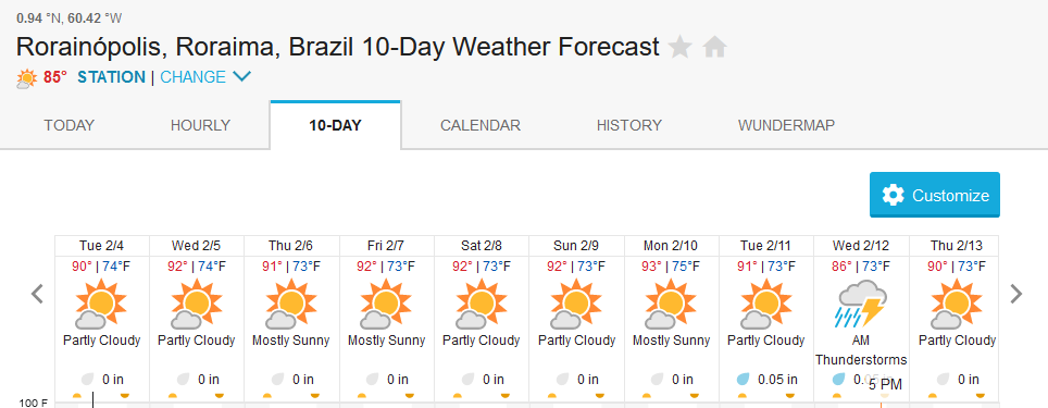 The triangle within Barcelos, Caracaraí and Rorainopolis in the area of influence of our Xeruini, Jufaris and Itapará fisheries forecasts above showing almost no rain episodes in the week.