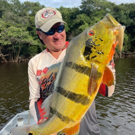 Our 43 anglers during February had excellent fishing. Eight anglers broke waters on the upper Itapara with 2,050 peacocks of which 11 were 17-18lbs, two 19 lbs, one 20lbs, and one 21 lbs.
