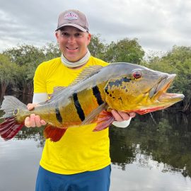All of our 46 anglers during January 2022 had excellent fishing at our private Omero & Mata-Mata lakes despite high waters almost everywhere. Over 300 peacocks were over 10 lbs.