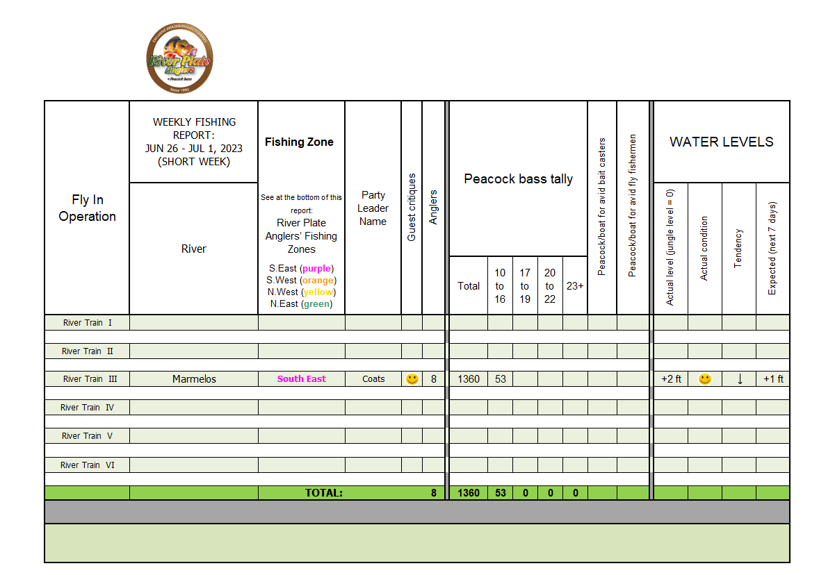The Reimer group of 8 anglers landed 1594 Peacocks. Our old friend-of-the-house Curt Reimer and his son came back again for more action. We are more than happy to support some family bonding on the water. The double caught is sure to be a great addition to the family album. Other less aggressive tropical species were left out of the fishing tally.