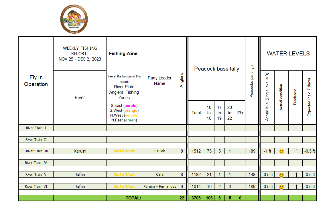 3708 Peacocks boated by 22 anglers