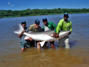 The Payara, Hydrolycus scomberoides, also known as “Dog Tooth Characin”, “Vampire Fish”. Much appreciated sport fish due to the impressive fights they put up. Payara are widely considered to be one of the fiercest struggling freshwater fishes, offering harder fight than other popular fishes from the area such as peacock bass. They also add to the sport of catching them by jumping out of the water much the way salmon do.