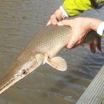 Gars are among the oldest fish alive today. The fossil record traces the existence of alligator gars back to the Early Cretaceous over a hundred million years ago. Gars are often referred to as “primitive fishes”, or “living fossils” because they have retained some morphological characters of their earliest ancestors, such as a spiral valve intestine which is also common to the digestive system of sharks, and they can breathe both air and water. They are considered euryhaline because they can adapt to varying salinities ranging. Alligator gars have been extirpated from much of their historic range through habitat destruction, indiscriminate culling, and unrestricted harvests.