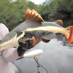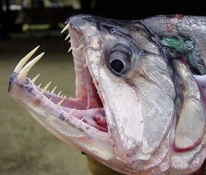 The Payara, Hydrolycus scomberoides, also known as “Dog Tooth Characin”, “Vampire Fish”. Much appreciated sport fish due to the impressive fights they put up. Payara are widely considered to be one of the fiercest struggling freshwater fishes, offering harder fight than other popular fishes from the area such as peacock bass. They also add to the sport of catching them by jumping out of the water much the way salmon do.