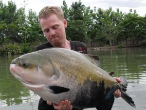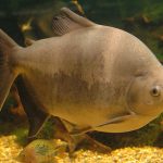 The tambaqui (Colossoma macropomum) is a freshwater fish of the subfamily Serrasalminae, family Characidae. It is also known by the names pacu, black pacu, black-finned pacu, giant pacu, cachama and gamitana.