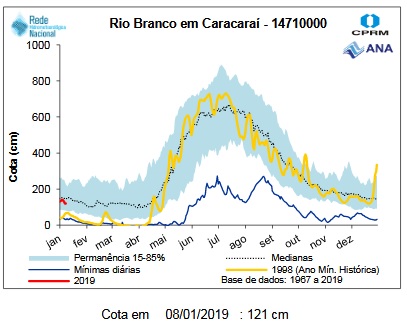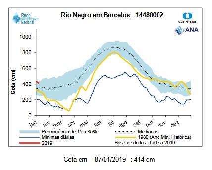 Above the rainfall forecast for Barcelos in the area of influence of the Jufaris and Kabori, below Rorainopolis in the area of influence of the Itapará river, both confirming that the dropping tendency should prevail.