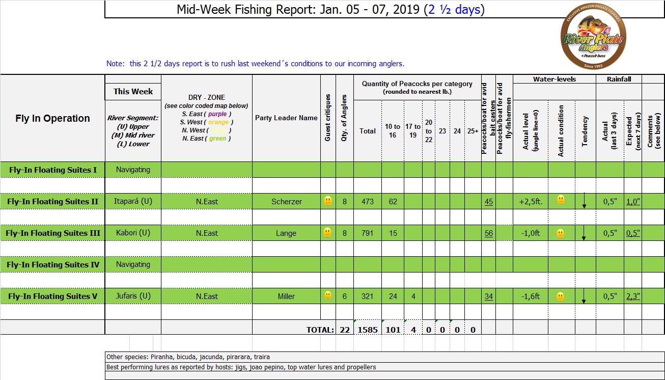 Note: this 2 1/2 days report is to rush last weekend’s conditions to our incoming anglers.