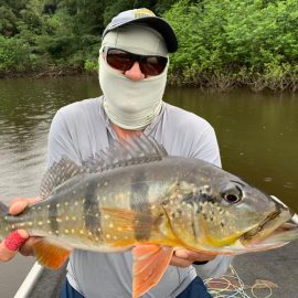 Dry-Zone N. East – The Branco River is rising a bit due to ensuing rain over the week end. However, if it continues, the Lakes (Omero and Mau) fisheries will improve since most of the back lagoons which account for 80% of the fishery become accessible in higher water levels. We will continue fishing in this promising Zone. Dry-Zone N. West – The only lower water levels is the lower Xeriuni River in our private water which is under the influence of the Branco River basin. We will continue fishing this Zone. All other water levels on the Negro River basin tributaries still remain high for reasonable fishing, which is not normal for this time of the year but, it is happening with greater frequency due to the everchanging rain fall conditions in the “El Nino” era. Dry-Zone S. East – Water levels are still good in this area 150 miles south of Manaus. Our private rivers in this Dry-Zone time period were closed down due to Covid. Dry-Zone S. West – Water levels are rising rapidly which is not normal for this time of the year Our private rivers in this Dry-Zone time period of June-August were closed down due to Covid.Gallery